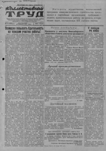 2. „Коллективный труд' 25 января 1953 года № 9 (1642) Кандидаты в депутаты Карасукского районного Совета депутатов трудящихся Окружные избирательные комиссии зарегистрировали следующих кандидатов в депутаты Карасукского районного Совета депутатов трудящихся: Калуга Яков Филиппович, рождения 1910 года, член КПСС, председатель исполнительного комитета Карасукского районного Совета депутатов трудящихся. Выдвинут общим собранием рабочих и служащих Карасукского рыбозавода по Октябрьскому избирательному округу № 1. Биндюн Александра Спиридоновна, рождения 1919 года, член КПСС, заведующая райздравотделом райисполкома. Выдвинута общим собранием медицинских работников Кара- сукской райбольницы но Демья- но-Бедного избирательному округу № 2. Мицевич Алексей Антонович, рождения 1923 года, член КПСС, председатель районной плановой комиссии райисполкома. Выдвинут общим собранном рабочих и служащих Карасукского пункта «Заготзер- но» по Ворошиловскому избирательному округу № 3. Сабурова Александра Ми хайловна, рождения 1924 года, член ВЛКСМ, кочегар депо ст. Карасук. Выдвинута общим собранием рабочих и служащих станции, депо, вагонного пункта и работников пути станции Карасук по Кагановпчскому. избирательному округу № 4. Алехин Григорий Тимофеевич, рождении 1916 года, член КПСС, главный бухгалтер райпотребсоюза. Выдвинут общим собранием рабочих и служащих Карасукского районного союза потребительских обществ по Сталинскому избирательному округу № 5. Яцвнно Михаил Тихонович, рождения 1914 года, член КПСС, секретарь исполкома Карасукского районного Совета депутатов трудящихся. Выдвинут общим собранием рабочих и служащих Карасукского сельского потребительского общества по Карасукскому избирательному округу № 6. Мазурин Николай Ильич, рождения 1905 года, член КПСС, заведующий отделом сельского и колхозного строп тельства райисполкома. Выдвп пут общим собранием членов промысловой артели «Энергия» по Кировскому избирательному округу № 7. Добровс.чий Михаил Яковлевич, рождения 1905 года, беспартийный, хирург Карасук- ской больницы. Выдвинут об щим собранием членов промысловой артели «Новое производство» по Фрунзенскому избирательному округу № 8. Устинов Вилен Иванович, рождения 1923 года, член КПСС, заведующий культпрос- ветотделом райисполкома. Выдвинут общим собранием рабочих' и служащих Карасукской МТС по Свердловскому избирательному округу № 9. Богатырева Пя Михайловна, рождения 1927 года, член КПСС, народный судья. ВыдвпMH093J1 нута общим собранием рабочих и служащих межрайонного отделения «Автотракторсбыта» по Максимо-Горьковскому избирательному округу № i<). Борисова Мария Григорьевна, рождения 1924 года, член КПСС, главный врач санэпидстанции. Выдвинута общим собранием рабочих и служащих Карасукского мясокомбината по Буденновскому избирательному округу А» 11. Шаравина Зоя Павловна, рождения 1926 года, член ВЛКСМ, аппаратчик Карасукского молочно-консервного завода. Выдвинута общим собранием рабочих’ ипжеиерно-тех- ничеекпх работников и служащих молочно-консервного завода по Заводскому избирательному округу № 12. Трахименон Василий Васильевич, рождения 1897 года, член КПСС,заведующий райсель- хозотделом. Выдвинут общим собранием рабочих и служащих районной конторы связи по Союзному избирательному округу № 13. Егорова Валентина Ивановна, р