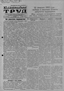 И ( p f o t o ' f r u O f l C C У С ^ Ф H Q ** CLCcf *** Q t j u u cc . ^ Пролетарии всех стран, соединяйтесьl ЖЬилекигшСншг Т Р У Д Орган Карасукского райкома Коммунистической партии Советского (£юза и районного Совета депутатов трудящихся, Новосибирской области. _____ ив 4д 7)1 ЧЕТВЕРГ, N- 74 ( 1 0 4 /Ц J2 ФЕВРАЛЯ 1953 ГОДА Цена 10 Ht Не упустить первенство Коммунистическая партия п правительство проявляют повседневную заботу о максимальном удовлетворении матсрпаль- ных и культурных потребно- "* стей советских людей. В нашем районе к услугам трудящихся предоставлена большая сеть культурных очагов. Руководствуясь решениями XIX съезда партии, многие из них правильно строят свою работу, учитывая запросы населения. Сейчас сельские культпро- светучреждения готовятся к районному смотру художественной самодеятельности, который начнется с 20 февраля. Эта подготовка совпала с важным • событием—с выборной кампанией. Поэтому на клубы, библиотеки, избы-читальни ложится большая ответственность « по обслуживанию избирателей. Сэтой задачей успешно справляются районный Дом культуры, Морозовский, Кучугур- ский и Студеновскнй сельские клубы. Здесь организованы постоянные кружки художествен- ' г' ной самодеятельности, агит- художественные бригады, которые регулярно выступают перед населением; в период подготовки к выборам они дали по нескольку концертов для избирателей. Недавно в селе Студеное проходил сельский смотр. Он показал значительный рост круж- ков художественной самодея- тельностп п мастерства кружковцев. В смотре приняли участие три коллектива—сельского клуба, средней школы и МТС. Участники самодеятельности исполнили больше 20 различных номеров. Интересный и содержательный концерт готовит клуб колхоза «Пятилетка». Два года подряд наш район на областном смотре художественной самодеятельности завоевывал первенство. Это многому обязывает работников культпро- ' , светучрежденпй. Задача состоит в том, чтобы завоевать переходящее Красное знамя и в 1953 году. Однако подготовка к смотру показывает, что отдельные руководители очагов культуры безответственно относятся к своим обязанностям, не привлекают к активной деятельности в кружках широкие слои населения. Не оказывают должной помощи самодеятельным коллективам некоторые партийные организации, сельские Советы, руководители предприятий и учреждений. В Хорошинском сельском клубе к смотру готовятся около 40 колхозников. Коллектив работает над постановкой интересного литературно-музыкального монтажа «СССР на страже мира» и др. номеров. Но плохо то, что исполком сельсовета до сих пор еще не утвердил оргкомитет по подготовке и проведению сельского смотра. Вопрос о смотре не был обсужден ни на исполкоме, ни на комсомольских собраниях в колхозе им. Андреева и МТС. II не случайно, что здесь в развитии самодеятельности имеется много недостатков. В самодеятельность не вовлечены рабочие и служащие МТС, интеллигенция села. Секретарь комсомольской организации МТС т. Ковтун подготовку к смотру считает не ее делом, а директор ссмплет- неН школы т. Овдпенко категорически запретила учителям принимать участие в работе кружков. Ивот получается, что проводники культуры на селе— учителя по указанию директора от населения ограждены стенами школы. Преподаватель физического воспитания т. Горский выступление на сцене считает даже униж
