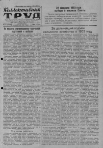 Пролетарий всех (трон, соединяйтесь! КЬилекжшвнмй Т Р У Д Орган Карасукского райкома Коммунистической партии Советского Союза и районного Совета депутатов трудящихся, Новосибирской области. /V-015 (1648)J ВОСКРЕСЕНЬЕ 15 ФЕВРАЛЯ 1953 ГОДА Цена 10 ноп. Не медлитьс организационно-технической подготовкой к выборам Приближается день выборов в местные Советы. Сотни агитаторов п доверенпых лиц проводят разъяснительную работу среди трудящихся по материалам XIX съезда партии, речи товарища Сталина, его гениальному труду «Экономические проблемы социализма в СССР», рассказывают о планах экономического п культурного строительства, знакомят избирателей с биографиями и трудовой деятельностью кандидатов, проводят встречи кандидатов в депутаты с избирателями. Подготовка к выборам подходит к завершающему этапу. Сейчас партийным организациям, сельским Советам, участковым комиссиям наряду с развертыванием агитационно-массовой работы следует обратить особое внимание организационно-технической подготовке к выборам. Но терпит ин малейшего отлагательства работа по выверке списков избирателей. Это не техническая работа, а важнейшее политическое дело, которое должно обеспечить всем гражданам возможность использовать свое почетное право участия в выборах. Одпако, как показывают факты, многие сельские Советы н участковые комиссии проявляют медлительность и недопустимую неряшливость в уточнении списков. Ни чем иным, как только безответственным отношением к порученному долу председателя участковой комиссии т. Ларина, его заместителя т. Кислицпна н заведующего агитпунктом т. Брсв- нова можно объяснить тот факт, что по Железнодорожному избирательному участку № 2 до сих пор не закончена сверка списков. Не лучше положение в Хорошинском, Чумайском, Майском п некоторых других избирательных участках. Здесь небрежно отнеслись к составлению списков— допущены пропуски, искажения фамилий, неправильные данные о возрасте, и сейчас медлят с исправлением этих педостатков. Настало время окончательного оборудования помещений избирательных участков к дню голосования, установки кабин, избирательных урн и т. д. Заранее надо позаботиться об освещении, отоплении, подготовке «комнат матери п ребёнка», о создании в день выборов всем избирателям условий для культурного отдыха. День выборов— всенародный праздник. Ио-празднпчному должны быть оборудованы не только агитпункты п избирательные участки. Нарядный и привлекательный вид должны принять все улицы. Однако руководители предприятий и учреждений, секретари партийных и комсомольских организаций мало заботятся об этом. Проходя по улицам, не увидишь на здавиях флагов, портретов руководителей партии и правительства, таблиц, диаграмм, показывающих экономический и культурный рост СССР, нет лозунгов и плакатов, извещающих о дне выборов, призывающих отметить эту дату новыми производственными подарками. Следует сейчас уже составить и уточнить списки избирателей, к которым но той или иной причине необходимо будет послать на дом переносную урну. Надо раз|ешить вопрос об организации подвозки' на избирательные участки в день голосования престарелых избирателей и инвалидов Отечественной войны н труда. Не должны стоять в стороне в день выборов культурно-просветительные учреждения и отдел кинофикации. Уже сейчас