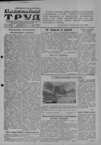 2. „Коллективный труд* VI п л е н у м КПСС 27 февраля состоялся пленум райкома партии. На пленум были приглашены председатели колхозов, директоры МТС и совхозов, а также секретари партийных организаций. Собравшиеся заслушали и обсудили два вопроса: о подготовке колхозов, МТС и совхозов к весеннему севу и о работе с кандидатами в члены КПСС в районной партийной организации. С докладом по первому вопросу выстуипл председатель исполкома районного Совета депутатов трудящихся т. Калуга. Пн отметил, что несмотря на довольно короткий срок, оставшийся до начала сева, район в целом еще далеко не готов к полевым работам. Особенно неудовлетворительно готовятся к весне машинно-тракторные станции. Колхозы очень медленно ремонтируют конный сельхозин- вентарь, сбрую, но принимают должных мер к быстрейшей подготовке семян. Совсем но приступили к ремонту плугов, борон, сеялок в колхозах «П уть Ленина», «МаякИльича». Докладчик подробно остановился на задачах, которые необходимо решить в ближайшие дни, чтобы весенний сев встретить во всеоружии. 1 В прениях выступило 1J человек. Секретарь парторганизации колхоза «Новый мир» т. Бобровский сказал: — Мы очень много говоримо социалистическом соревновании, но как оно проходит на местах, этим райком и райисполком не интересуются. По сути дела руководство соревнованием в районе отсутствует. Итоги социалистического соревнования колхозов, МТС и совхозов по проведению комплекса зимних агромеропрп- ятвй не подводятся, не публикуются в районной газете. Колхозники нашей артели лаже не знают, как идут дела по подготовке к севу в соседних колхозах. Председатель колхоза имени Молотова т. Шашель подверг критике работу аппарата пунк та «Заготзерно». — Сейчас,— заявил он,— колхозы заняты вывозкой из пун кта посевного зерна и фуража. Но из-за волокиты прп оформлении документов и получении грузов машины бесполезно, простаивают по нескольку часов. А это очень дорого обходится колхозам. За простои машин мы уплатили сумму, значительно превышающую стоимость транспортировки семян. - — Мы уже отремонтпровалп весь сельскохозяйственный инвентарь,— говорит председатель колхоза им. Тельмана т. Крупа,— Полным ходом сейчас вывозим на поля навоз, собираем золу и птичий помёт. Нынче для трактористов построим второй благоустроенный вагончик. В своих выступлениях районный уполномоченный министерства заготовок т. Пузырёв, заведующий сельхозотделом райкома партии т. Руцкпй, заведующая райздравотделом т. Бпндюк, директор Чёрно-Курь- чшской МТС т. Бугай поднимали вопросы о создании к у л ь турно-бытовых условий для механизатров, о необходимости организация r каждом колхозе детских яслей. Правильный упрёк был сделан в адрес «Сельхозснаба» и «Автотракто- росбыта». Эти организации не заботятся о своевременном снабжении запасными частями МТС и колхозов. Неоперативно руководит подготовкой к ве- — Согласно Уставу КПСС,— говорит он,— утвержденному X IX съездом партии, установлен новый порядок приёма в члены партии. Партийная организация должна хорошо изучить вступающего в партию н принимать только тогда, когда есть твердая уверенность, что он будет достойным коммунистом. В этих целях все вступающие в партию проходят кандидатский стаж. Но эти требования партийными организациями выполняются неудовлетворительно. Наличие в орган