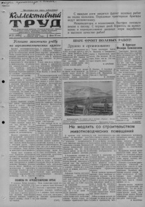 и CksZ'tcdx OLfLCU . o 2*Ctl^ Пролетарии всех стран, соединяйтесь1 KbJJLekwui&Hmi Орган Карасукского райкома Коммунистической партии Советского Союза и районного Совета депутатов трудящихся, Новосибирской области. №33 (1666) | ВОСКРЕСЕНЬЕ, 12 АПРЕЛЯ 1953 ГОДА Цена 10 ноп. Успешно закончить учёбу на агрозоотехнических курсах Крупное механизированное колхозное производство нельзя веста без специальных знаний. Чтобы успешно бороться за повышение урожайности сельскохозяйственных культур, за систематический рост поголовья и продуктивности общественного животноводства, от работников социалистического сельского хозяйства требуется уменье управлять сложными машинами, творчески применять все новейшие агротехнические и зоотехнические приемы. Труженики сельского хозяйства охотно и настойчиво овладевают мичуринской наукой и передовой практикой. В помощь им в нашем районе созданы трехлетние агрозоотехнические курсы без отрыва от производства. Эта форма учебы дает возмоясноеть сделать достижения науки и опыт передовиков достоянием всех колхозников. Особого внимании заслуживает работа агротехнических курсов в колхозе «Красный путиловец». Агроном т. Гор- пинченко по-серьёзному подошёл к организации учёбы. Своевременно были подобраны слушатели,'оборудовано помещение, разработана методика преподавания каждой темы, приготовлены наглядные пособия. Успешно окончили курсы первого года обучения 15 no-i леводов. Все эти товарищи скоро получат звание мастера сельского хозяйства второго разряда по растениеводству. Неплохо справились с учебной программой агротехнические курсы колхозов «Пятилетка®, «Новый мир», зоотехнические— колхоза имени Буденного и некоторые другие. Сейчас здесь идет повторение пройденного материала. Скоро слушатели приступят к сдаче экзаменов. Однако такое положение не везде. Отдельные руководители артелей и специалисты сельского хозяйства массовой форме обучения колхозников не уделяют повседневного и должного внпманпя. Например, полеводы колхоза имени Джамбула, где председателем т. Алдунгаров, изъявляли большое желание к овладению передовым опытом н знаниями возделывания сельхозкультур. Но т. Алдунгаров и агроном Октябрьской МТС т. Спиридонов, которому было поручено организовать и руководить курсами, не посчитались с этим. В результате не было проведено ип одного занятия. Только лишь из-за несерьезного подхода к порученному делу зоотехников Овчинникова и Рухлова прекратили свою работу зоокурсы в колхозах «Маяк Ильича» и имени Молотова. В неудовлетворительном ходе учебы повинен и районный отдел сельского хозяйства. Он мало внпкает в работу курсов, не оказывает преподавателям необходимой помощи. Не требует от нерадивых специалистов безусловного выполнения своих прямых обязанностей. Сейчас пачинается подведение итогов учебы за год. Это самый ответственный и важный период в деятельности курсов. В ближайшие дни нужно повсеместно завершить программный материал. Преподаватели должны до начала экзаменов с курсантами основательно повторить пройденные темы, подготовить плакаты, таблицы, гербарии, экспонаты и другие наглядные пособия, создать экзаменационные комиссии. Эказамены лучше проводить в форме собеседования. Но этим учебный год не заканчивается. Руководителям курсов и правлениям колхозов нужно умело организо