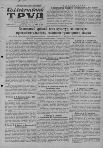 2, „Коллективный труд" 16 апреля 1953 года Jfe 34 (1667) В райкоме КПСС и райисполкоме О неудовлетворительном ходе весенне-полевых работ в колхозах и машинно-тракторных станциях района Бюро райкома КПСС и исполком районного Советадепутатов трудящихся отметили, чтомногие колхозы и МТС района крайне неорганизов-шно вступилии ведут весенне-полевые работы. До сего временя в машинно-тракторных станциях района много тракторов еще не выпущено из ремонта, а тот тракторный парк, который включенв работу, при отсутствии контроля со стороны руководителей МТС и правленой колхозов, вбольшинстве своем вночную смену простаивает. Многие трактористы не выполняют сменных норм выработки. Осо61 нно плохо используется техника на полевых работах в колхозах им. Сталина, «Путь к коммунизму», им.М. Горького, «Жол Сталина» иим. Молто ва. В ряде колхозов, обслуживаемых Студеновской, Хорошин- ской п Карасукской МТС,мощные гусеничные тракторы используются не с подпой нагрузкой. Работа по часовому графику неорганизована, задания трактористам в натуре не доводятся. Техническое обслуживание п диспетчерская служба организованы неудовлетворительно. Живое тягло колхозов на полевых работах используется пло хо. (! первых дней полевых работ в колхозах «Жол Сталина», «Маяк Ильича» и др. допускается брак—мелкая пахота, огрехи при закрытии влаг.и РядIруководителей колхозов и МТС и особенно колхозов нм. Калинина, им.Сталина,им.Жданова, им. Лмангельды, «Маяк Ильича» не создали необходимых культурно-бытовых условий для механизаторских кадров. Массово-политическая работа и социалистическое соревнование во многих тракторных и полеводческих бригадах отсутствуют. Рабочие планы п производственные задания широко не обсуждены среди работников полеводческих п тракторных бригад. Дополнительные соглашения с колхозами не заключены, сезонные задания до трактористов не доведены. Многие колхозы района до сих пор не выбрали со склада сельхозснаба минеральные удобрения и ядохимикаты. Вывозка семян с пункта «Заготзер- но» организована неудовлетворительно, обогрев и протравливание семян не проводятся. Бюро райкома КПСС и исполком районного Совета депутатов трудящихся считают недопустимым, когда руководителиряда МТС п колхозов не ведут должной борьбы за проведение весеннпх полевых работ в лучшие агротехнические ерокп, тем самым ставят под угрозу срыва получение высокого урожая. Бюро райкома КПСС н исполком районного Совета депутатов трудящихся осудили, как вредную для дела получения высокого урожая, практику сдерживания и запаздывания с проведением весенних полевых работ, проявляемую со стороны некоторых руководителей МТС и колхозов. Обязали директоров МТС и правления колхозов, первичные партийные организацииМТС и колхозов обеспечитьв ближайшие два—три дня окончание ремонта тракторов и прицепных сельскохозяйственных машин, а также подготовку к полевым работам транспортных средств и сбруи. Включить в работу все тракторы и живое тягло колхозов, используя их в первую очередь на прибивке влаги,весновспашке, культивации, бороновании озимых,, многолетних трав и севе ранних культур с тем, чтобы до массового сева яровых закончить предпосевные работы в каждом колхозе н совхозе. В ближайшие два—три дня закончить закрытие влаги на всех парах п зяби. Обеспечить высокопроиз