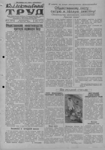 2. „Коллективный труд* 24 мая 1953 года № 44 (1677) П А Р Т И Й Н А Я Ж И З Н Ь На итоговых занятиях Организованно и на выгоном идейно-политическом уровне прошли итоговые занятия в кружке партийного просвещения колхоза «Жол Сталина». Пропагандист-председатель сельского Совета т. Сарсенбаев и секретарь парторганизации т. Жанжакспн со всей серьезностью отнеслись к вопросу идейно-политического воспитания коммунистов. Тов. Сарсенбаев после прохождения учебной программы перед подведением итогов провел несколько занятий со слушателями по повторению пройденного материала, по слабо усвоенным темам были дополнительно сделаны обзорные лекции. В назнченное время 12 мая всо слушатели собрались на итоговое собеседование. Уверенно отвечал на поставленный вопрос о происшедших изменениях в области развития народпого хозяйства страны в период между XVI11 и XIX парт- съоздамп председатель колхоза коммунист т. Кулманов. Он ярко показал рост могущества советского государства, преимущество социалистической системы хозяйства перед капиталистической, указал, что наша партия и правительство в руководстве страной опираются на основной экономический закон социализма, где в центре внимания стоит человек с его потребностями. Глубокие знания материалов XIX съезда Коммунистической партии Советского Союза показали коммунисты тт. Фархутдинов и Кишкиналпн. ' Изучая материалы исторического X IX съезда партии, коммунисты тт. Кулманов, Фархутдинов и Кишкиналпн выступали с докладами и беседами перед колхозниками, разъясняя им задачи, поставленные XIX съездом перед работниками сельского хозяйства и мобилизуя их на практическое выполнение этих задач. Итоговое занятие показало, что все 11 слушателей кружка справплпсь с изучением учебной программы. Партийная организация наметила на очередном собрании обсудить итоги политической учебы коммунистов за прошедший учебный год и определить форму повышения идейно-политического уровня каждого коммуниста на будущее время, и. ляпич, пропагандист райкома КПСС. Ленинград. Лектор Ь. С. Андреев в доме архитектора читает лекцию: „И. В. Сталин о характере экономических законов при социализме” . Высокая выработка Нашей артели в этом году предстоит выработать 1.600 тысяч штук кврпдча-сырца. Чтобы полвее удовлетворить спрос местной промышленности в стройматериалах, рабочие кирпичного цеха обязались доведенное задание значительно перевыполнить. Развернув социалистическое соревнование за увеличение производительности труда и повышение качества выпускаемой продукции, они добились хороших результатов. За 25 рабочих дней цех изготовил 300 тысяч кирпичей. Рекордной выработки достигла вторая бригада. 20 мая за смену она изготовила 11.200 кирпичей. На 140-170 процентов выполняют норму заливщик т. Шульга, катали тт. Максименко и Гу сакова, забойщик т. Лемешко и другие. Кирпичный цех соревнуется с сапожным. Сейчас кирпичники держат переходящее красное знамя артелп. Н. ГРЕСЬ, председатель артели „Новое производство*. ГОТОВЯТСЯ КСТРИЖКЕ ОВЕЦ Животноводы колхоза «Жол Сталина» проявляют большую заботу об увеличении поголовья овец н повышении их продуктивности. Сейчас на ферме идёт массовый окот. Чабан У спаи Куль- чубаев дал слово сохранить весь нарождающийся молодняк и подучить от каждой овцы не менее трёх килограммов шерсти. Свое обязательс