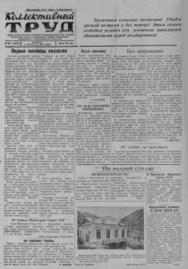 2. „Коллективный труд* о августа 1Ыэл года В райисполкоме и райкоме КПСС Об условиях социалистического соревнования на период уборки урожая, хлебозаготовок и вспашки зяби В целях успешного проведения уборки урожая, выполнения ’ государственного плана хлебозаготовок, засыпки потребного количества кондиционных семян и вспашки зяби в колхозах и совхозах бюро райкома КПС и исполком райсовета постановили: 1. Утвердить условия социалистического соревнования на период уборки урожая, сдачи хлеба государству, вспашки зяби и других сельскохозяйственных работ. 2. Учредить четыре переходящих красных знамени исполкома райсовета и райкоЛа КПСС: передовому колхозу, совхозу, МТС и сельскому Совету, с представлением права хранения этих знамён в отличившихся своей работой ноле водческнх и тракторных бригадах. 3. Учредить районную доску почёта в газете «Коллектив-' ный труд», на которую заносить передовиков уборки урожая и хлебозаготовок, показывающих высокую производительность труда и хорошее качество работы. 4. Итоги социалистического соревнования подводить внутри бригад ежедневно, в МТС, колхозах и совхозах—по пятидневкам н но району—один раз в декаду. Результаты соревнования регулярно освещать в степных газетах, «боевых листках», на досках показателей. Первые птогп социалистического соревнования подвести на 10 августа 1953 года. 5. Райком партии и райисполком обязывают секретарей парторганизаций колхозов, МТС Письма в редакцию Лекции для рабочих артели и совхозов, председателей колхозов и сельских Советов, директоров МТС и совхозов учредить в колхозах, МТС и совхозах переходящие красные знамёна, флажки и вымпелы для вручения передовым бригадам, фермам и комбайновым агрегатам. Учредить в каждом колхозе, совхозе п МТС доски почёта для занесения передовиков хлебоуборки. Райисполком и райком партии призывают колхозников, работников МТС и совхозов широко развернуть социалистическое соревнование за досрочное выполнение и перевыполнение планов уборочных работ и хлебопоставок, за выполнение и перевыполнение сменных п дневных норм выработки п высокое качество всех полевых работ. Партпйиая организация артели «Путь к труду» проводит большуюмассово-разъяснптедь- ную работу среди членов артели. Она регулярно организует читки докладов, лекций, проведение бесед по материалам газет и т. д. За последнее время коллектив артели прослушал доклады о пройденном нашей партией пути со времени II съезда РСДРП, об итогах работы Пленума ЦК партии, на котором был разоблачён заклятый враг советского народа Берия. Недавно заведующий библиотекой райкома партии т. Кайгородцев прочитал лекцию о международном положении. Её прослушало более 30 человек. Лектору было задано ряд вопросов. Л. СОРОЧЕНКО. ДЛЯ ТРУЖЕНИКОВ ПОЛЕЙ Условия социалистического соревнования на период хлебоуборки, хлебозаготовок и вспашки зяби 1. Переходящие красные знамёна райисполкома п райкома КПСС вручать колхозам, совхозам и сельским Советам, добившимся наивысших показателей по выполнению декадных заданий на уборке урожая, сдаче хлеба государству и вспашке зяби при хорошем качестве работ. 2. В индивидуальном социалистическом соревновании считать передовиками: а) комбаййеров, убравших за Шкалу комбайном «Сталинец» 200 гектаров и намолотивших 2.200 центнеров зерна, комбайнами «С