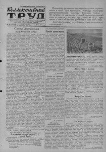 Пролетарии всех стран, соединяйтесьI ЮкЬШгтиСннй Т Р У Д Орган К а р а с у к с ко го р а й ком а К омм уни с тиче ской п а р т и и С ове тско го Союза и районно го Совета д е п у т а т о в ____________ т р у д ящ и х с я , Новосибирской о б л а с т и . /Г 8 2 (1 7 1 5 ) \ ВОСКРЕСЕНЬЕ, / / ОКТЯБРЯ 1953 ГОДА I Цена 10 н on. Инициатор районного социалистического соревнования в честь 36-й годовщины Октября коллектив райпромкомбината одержал большую победу — 10 октября он выполнил годовой производственный план по выпуску валовой продукции на 102,2 процента. Сейчас коллектив работает в счёт 1954 года. Следуйте примеру передовиков социалистического соревнования! Смотр достижений тружеников села Вчера в VI часов дня в р. п. Карасуке была торжественно открыта и начала свою работу районная сельскохозяйственная выставка. Она явится смотром достижений тружеников колхозов, МТС н совхозов района во всех отраслях сельского хозяйства н передачей опыта мастеров по выращиванию высоких урожаев, лучших животноводов и механизаторов. На выставке будут подведены итоги успехов, достигнутых в сельском хозяйство нашего района но дальнейшему повышению урожайности полей, росту поголовья и увеличению продуктивности общественного скота, вооруженности сельского хозяйства современной техникой Выставка вызвала к себе живой интерес у трудящихся райцентра и района. В первые же часы после открытия ее посетили тысячи рабочих, служащих, колхозников и учащихся школ. Прибыли делегации и из соседних районов. В отделе полеводства на стенде Карасукской МТС среди фотографий передовиков имеется снимок комбайнера Вестера Николаевича Кулямпнна. Он за гезон «Сталпнцом-6» убрал 1133 гектара, сэкономил 1185 кг горючего и 530 рублей на техуходах, заработал 5.994 рубля и 83 пуда хлеба, Для машины т. Кулямпнна отведено почётное место на выставке и посетители подолгу задерживаются около неё, беседуют с комбайнером. Здесь же стоит самоходный комбайн II. В. Каратаева, на котором он убрал в нынешнем сезоне 1045 гектаров хлебов при норме 300 гектаров. Тов. Каратаев сэкономил на теху- ходе 678 рублей средств и 1359 кг горючего. Его заработок— 6.209 рублей деньгами и S8 пудов хлеба. В разгар уборочных работ в колхозе имени Тельмана бригадир тракторной бригады т. Гайдай и агроном т. Коломоец для ускорения очистки зерна переоборудовали на сортировку конную молотилку. Производительность её 350-400 центнеров за 10 часов при 98-процентной чистоте зерна. Колхоз представил эту машину на выставку. Передовые доярки совхоза «Октябрь» добились высоких надоев молока. На выставке представлены несколько высокопродуктивных коров. Обращает на себя внимание корова Октябрина. Возраст её 5 лет. За 273 дня этого года от нес надоено 4.052 кг молока. Суточный удой— 27 кг. На молочно-товарной ферме колхоза «Путь к коммунизму» в апреле 1953 г. были получены телята-дьойниьн Им только в конце октября исполнится но полгода, а они сейчас уже весят но 175 килограммов каждый, ежесуточный привес составляет по 880 граммов. Колхоз имени Жданова своими представителями на выставку послал доярок Марию и Александру Иващенко. Каждая из них за девять месяцев этого года надоила на фуражную корову около 19 центнеров молока. Па выставке мы можем встретить передовиков полеводства и овощеводства, бригадир полеводческой бригады колхоза «Пятилетка» X. Германов получил урожай пшеницы на площади
