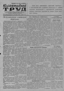 Пролетарии всех стран,' соединяйтесь! 1CoUAeJemu£H$ui Т Р У Д ОРГАН КАРАСУКСКОГО РАЙКОМА КОММУНИСТИЧЕСКОЙ ПАРТИИ СОВЕТСКОГО СОЮЗА И РАЙОННОГО СОНЕТА ДЕПУТАТОВ ТРУДЯЩИХСЯ, НОВОСИБИРСКОЙ ОБЛАСТИ Долг всех работников советской торговли— в кратчайший срок устранить имеющиеся в работе торговых организаций и предприятий недостатки, поднять советскую торговлю на новую, более высокую ступень. № 96 ( 1729) | Воскресенье, 29 ноября 1953 Г. I Цена 10 к. За культурную советскую торговлю Коммунистическая партия и Советское правительство, руководствуясь требованиями основного экономического закона социализма, принимают все меры для максимального удовлетворения постоянно растущих материальных и культурных потребностей трудящихся нашей страны. ПК КПСС и Совет Министров СССР в последних постановлениях наметили пути крутогв подъема производства предметов народного потребления. В связи с этим значительно повышается роль потребительской кооперации, призванной обеспечивать бесперебойную продажу всех необходимых населению товаров в каждом населённом пункте, значительно улучшить обслуживание покупателей, организовать быстрое продвижение к потребителю все возрастающей массы предметов народного потребления. С выходом в свет постановления ЦК КПСС п Совета Министров' Союза ССР «О мерах дальнейшего развития советской торговли» организации и отдельные работники потребкооперации нашего района несколько улучшили работу. Значительно вырос товарооборот, улучшилось снабжение населения товарами народного потребления. Однако работники торговли очень медленно решают задачи, намеченные партией и правительством. Часто встречаются факты отсутствия в’ продаже товаров повседневного спроса. Так, в магазинах Благодатского сельпо не всегда можно купить хлеб, керосин, соль, спички. Трудно найтп в магазинах района в настоящий период валяную обувь, телогрейки, ламповые стекла. Плохо поставлено изучение спроса населения, в результате чего допускаются ошибки в завозе и распределении товаров. Например, в Студеновское сельпо очень много доставлено фланели, тогда как здесь она но пользуется особым спросом, между тем отсутствует веровина, обувь для взрослых, оконное стекло. Серьезные недостатки имеются в торговле хлебом. В торговую сеть зачастую хлеб поступает недоброкачественный— сырой, кислый. Ограничен ассортимент хлебобулочных изделий. Совершенно нот в продаже овощей. В ряде мест грубо нарушаются правила советской торговли. У отдельных продавцов,как, например, т. Петровой (магазин X? 1 Карасукского сельпо), т. Талан (Рассказовское сельпо), т. Гладченко (Черно-Курь- инское сельпо) и других, но изжита практика продажи ходовых товаров из под прилавка, самоснабжения. Наблюдаются случаи обмеривания, обвешивания и обсчитывания покупателей. К серьезным недостаткам в организации торговли следует отнести и низкую культуру обслуживания покупателей. Ни в одном магазине Карасукского сельпо нет оберточной бумаги; некоторые продавцы (т. Лах- но—ларек № С Карасукского сельпо, т. Нюхалова, Новак— Черно-Курьпнское сельпо), часто работают без халатов, грубо обращаются с покупателями, продукты хранят в антисанитарном состоянии, продают некачественный товар. Неудовлетворительно организована в сельской местности продажа товаров хозяйственного назначения: леса, кирпича