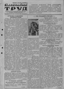Пролетарии всех стран, соединяйтесь! КЬиМкхпи&нмй T P V f l ОРГАН КАРАСУКСКОГО РАЙКОМА КОММУНИСТИЧЕСКОЙ ПАРТИИ СОВЕТСКОГО ( ОЮЗА И РАЙОННОГО ( ОВЕТА ДЕПУТАТОВ _____________ ТРУДЯЩИХСЯ, НОВОСИБИРСКОЙ ОБЛАСТИ______________ № 3 (1740) | Воскресенье, 10 января 1954 г. | Пена 1° кОТЧЕТЫ И ВЫБОРЫ ПРОФОРГАНОВ Советские профсоюзы! Шире развертывайте социалистическое соревнование за выполнение и перевыполнение народнохозяйственных планов! Распространяйте опыт новаторов производства! Проявляйте неустанную заботу о дальнейшем повышении материального благосостояния и культурного уровня рабочих и служащих! —- ПО РОАНОЙ СТРАНЕ шш ж Н Ш Щ ЩР? ш I s' » I *s ...... Первый урожай овощей В теплицах Новосибирского совхоза № 1 снят первый урожай помпдоров и огурцов. Сейчас произведена вторая высадка рассады в топлпчиый грунт. Следующий сбор овощей будет в феврале. \ f Украинская_ССР- Коллектив экспериментальной базы«Терезино» Киевской научпо-исследо вательской станции животноводства образцово поставил уход за животными на механизированной ферме крупного рогатого скота. Коровники оборудованы электродоильными установками, автопоилками, подвесной и наземной дорогой для транспортировки кормов. Ферма имеет кормоцех. Все помещения обогреваются паровым отоплением. На снимке: заведующий кормоцехом В. М. Бункевпч (слева) и машинист Я. Н. Федор- ченко приготовляют концентрированные корма. Фото М. Мельника. Прессклише ТАСС Повышаются и в совхоза В Министерстве совхозов Латвийской ССР подведены итоги соревнования за высокие надои молока. Первенство занял совхоз «Окте» В 1953 году здесь получено от каждой коровы в среднем по [адои молока х Латвии 4973 кг молока—на 373 кг больше, чем в предыдущем. Замечательных успехов добилась доярка совхоза «Вурт- нпекп» Р. Жуковина. Она получила от каждой из 12 коров по 5500 кг молока. Совхозы Заура площади Хозяйства треста зерновых и животноводческих совхозов Зауралья в текущем году освоят 45 тысяч гектаров неиспользуемых земель. Подготавливая^ весеннему севу техлья расширяют пшеницы нику и семена, специалисты выделяют новые массивы под яровую пшеницу. Весной совхозами будет засеяно этой культурой на 29 тысяч гектаров больше прошлогоднего. Новый железнодс КулундаСтроптелп Южно-Сибирской железной дороги закончили последние работы на участке Кулунда—Барнаул. >рожный участок -Барнаул Государственная комиссия приняла новый участок в постоянную эксплуатацию. Сельскохозяйственные в новом году Машиностроительный завод | На днях имени Дергачева (Сталино) в прошлом году выпустил для совхозов и МТС страны сверх плана 29 комплектов подвесных дорог для животноводческих ферм, 35 универсальных сверпльных станков и около 85 тысяч различных запасных деталей к сельскохозяйственным машинам. машины завод отгрузил свиносовхозам имени Орджоникидзе на Урале и «Ново- покровский» в Краснодарском крае первыо в 1954 году подвесные дороги протяженностью в 800 метров каждая. Завод до конца года даст совхозам 2600 комплектов оборудования для внутрифермско- го транспорта. ТАСС. Во з можно с ти не ис поль з уют с я В январе 1954 года во всех профсоюзных организациях района должны прой ти отчётно-выборные собрания. Это важное событие в нынешнем году проходит в обстановке величайших побед советского народа в деле коммунистического строительства. Профсоюзы—самая массовая орган