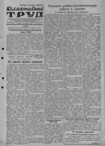 Пролетарии всех стран, соединяйтесь! — — — — — — — — — — — Ш Т Т П 1 И 1 М П Ч * И Ч« » H I * t M f M I | | * * * КЬилеШмевшгй П Г шШза ОРГАН КАРАСУКСКОГО РАЙКОМА КОММУНИСТИЧЕСКОЙ ПАРТИИ СОВЕТСКОГО СОЮЗА И РАЙОННОГО СОВЕТА ДЕПУТАТОВ _____________ ТРУДЯЩИХСЯ. НОВОСИБИРСКОЙ ОБЛАСТИ_____________ № 4 (1741) | Четверг, 14 января 1954 г. | Цена ю к. У К Я З ПРЕЗИДИУМА ВЕРХОВНОГО СОВЕТА СССР О проведении выборов в Верховный Совет СССР В связи с истечением 12 марта 1954 года полномочий Верховного Совета СССР третьего созыва, на основании статьи 54 Конституции СССР, устанавливающей, что новые выборы назначаются Президиумом Верховного Совета СССР в срок не более двух месяцев со дня истечения полномочий Верховного Совета СССР, и в соответствии со статьёй 72 „Положения о выборах в Верховный Совет СССР- , предусматривающей, что день выборов в Верховный Совет СССР объявляется не позднее, чем за два месяца до срока выборов, и что выборы производятся в нерабочий день, Президиум Верховного Совета Союза Советских Социалистических Республик п о с т а н о в л я е т : Назначить выборы в Верховный Совет СССР на воскресенье 14 марта 1954 года. Председатель Президиума Верховного Совета СССР К. ВОРОШИЛОВ. Секретарь Президиума Верховного Совета СССР Н. ПЕГОВ. МОСКВА, КРЕМЛЬ. 11 января 1954 г. ХИ-я районная партийная конференция В обстановке роста трудовой и политической активности трудящихся района 16 января с. г. начнет свою работу XII районная партийная конференция. Она явится важной вехой на пути дальнейшего развития экономики и культуры района. Конференция подведет итоги деятельности районной партийной организации и райкома КПСС за прошедший период от XI партконференции. Районная партийная организация, выполняя решения партии и правительства, организационно и идейно окрепла, еще больше расширила свои связи с массами. Об улучшении деятельности партийной организации свидетельствуют хотя бы такие факты. В этом году лучше проведены сельскохозяйственные работы, намного выше против прошлого года получен урожай зерновых, технических п овощных культур, выросли доходы сельхозартелей и колхозников. Но эти успехи не могут заслонить тех недостатков и промахов в работе, которые имели место в отчетном периоде. Показатели в экономике и культуре района могли быть намного лучшими, если бырайком иартип и первичные организации более умело и настойчиво решали поставленные перед ними задачи. На отчётно-выборных собраниях коммунисты критиковали райком партии за слабое руководство первичными партийными организациями, не всегда серьезный подход к делу подбора и воспитания кадров. Работники аппарата РК КПССредко бывают в колхозах, а когда бывают, то мало оказывают помощи, не выступают перед населением с докладами. «В колхоз «Путь Ленина»,—говорит коммунист Рассказов,—иногда приезжал секретарь райкома по Карасук- ской МТС тов. Шамрай. Но вместо того, чтобы разобраться с положением дел в колхозе, посоветовать, как и справить имеющиеся недостатки, пошумит, отругает кое-кого и с тем уедет». Партийная организация колхоза им. Буденного в своем решении записала: «Редко у нас бывали работники райкома, а бывая, не выступали с лекциями п докладами, мало оказывали помощи в налаживании внутрипартийной работы». Имеются существенные недостатки в партийном просвещении. Секретари райкома и инструкторы односторонне инт