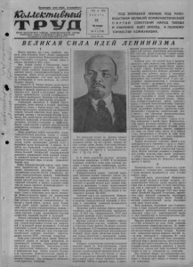 Пролетарии всех стран, соединяйтесь! « П 1 И М М И 1 М М м И « 1 И М • ■■ ■ I M » ■ » » • « — м ч » » * KbUUeJcmu&MUi ОРГАН КАРАСУКСКОГО РАЙКОМА КОММУНИСТИЧЕСКОЙ ПАРТИИ СОВЕТСКОГО СОЮЗА И РАЙОННОГО СОВЕТА ДЕПУТАТОВ ТРУДЯЩИХСЯ, НОВОСИБИРСКОЙ ОБЛАСТИ 1954 * 1954 Я Н В А Р Ь 21 Четверг № 6 ( 1743) Цена 10 коп. ПОД ЗНАМЕНЕМ ЛЕНИНА, ПОД РУКОВОДСТВОМ ВЕЛИКОЙ КОММУНИСТИЧЕСКОЙ П А Р Т И И СОВЕТСКИЙ НАРОД ТВЕРДО И УВЕРЕННО ИДЁТ .ВПЕРЁД, К ПОЛНОМУ ТОРЖЕСТВУ КОММУНИЗМА. В Е Л И К А Я СИЛА ИДЕЙ Л Е НИНИ З МА 1 Минуло тридцать лет с того скорбного дня, когда умер Владимир Ильич Ленин— гениальный основатель и руководитель Коммунистической партии и Советского государства, великий вождь и учитель трудящихся всех стран. Имя Ленина близко и безгранично дорого сердцу каждого трудового человека. Всю свою жизнь Ленин посвятил беззаветному служению рабочему классу, самоотверженной борьбе за дело коммунизма. Ярким светом революционной теории он озарил трудящимся всех стран путь борьбы за освобождение от гнета капитала, за светлое будущее народов. С именем В. И. Ленина связана целая эпоха в истории мирового революционного движения. Ленин отстоял н защитил марксизм от покушений оппортунистов всех мастей и всесторонне развил его дальше применительно к новым условиям классовой борьбы пролетариата. Ленинизм есть марксизм эпохи империализма и пролетарских революций. Гениальный мыслитель и великий стратег революции, Ленин впервые в истории марксизма разработал учение о партии нового типа, боевой партии пролетариата, вооруженной революционной теорией, сильной единством своих рядоз, неразрывными связями с миллионными массами трудящихся. Без такой партии рабочий класс не может свергнуть буржуазию, установить диктатуру пролетариата, построить социализм и коммунизм. Именно такой партией п явилась могучая партия коммунистов, созданная и выпестованная великим Лениным. Ленин разработал новую, законченную теорию социалистической революции, теорию о возможности победы социализма первоначально в одной стране. Вооруженная этой теорией, Коммунистическая партия организовала рабочий класс п беднейшие массы крестьянства п привела их к победе над буржуазией, к завоеванию диктатуры пролетариата, к установлению Советской власти. Победа Великой Октябрьской социалистической революции ознаменовала собой коренной поворот во всемирной истории человечества— от старого, капиталистического мира, к новому, социалистическому миру. Вождь Коммунистической партии, глава Советского правительства В. И. Ленин разработал научно обоснованную программу превращения экономически отсталой России в передовую, могучую социалистическую державу. Важнейшими звеньями этой программы были: создание современной крупной индустрии, как основы социалистической экономики, и перевод сельского хозяйства на рельсы крупного механизированного социалистического производства. Неуклонно выполняя заветы Ленина, беспощадно громя и отбрасывая всех врагов ленинизма, Коммунистическая партия под руководством Центрального Комитета во главе с И. 'В . Сталиным добилась построения социалистического общества в нашей стране, сделала нашу Родину такой, какой мечтал увидеть ее Ленин. Советский Союз—могучая социалистическая держава с высокоразвитой первоклассной промышленностью, самым крупным в мире коллективным се