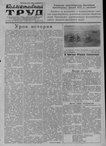 3. КОЛЛЕКТИВНЫЙ ТРУД 9 мая 1954 года, № 38 (1775) Ф Е Л Ь Е Т О Н На редкость веселой была свадьба у Николая п Пелагеи Собралось на неё пе один десяток односельчан. Каждому хотелось посмотреть на молодоженов, пожелать им счастья в семейной жизни. Да и такие события в период Отечественной войны былп не частым явлением в Ново-Ппколаевкс— все ребята ушли иа фронт за хдищать Родину, остались только те, творческий труд и фи знческпе силы которых страна считала целесообразнее псполь зовать в тылу. В пх число попал и 17-летнпй механизатор Николай Колган. Работал он тогда (это было в 1942 году), можно сказать, хорошо. Машинно-тракторная станция возлагала на него большие надежды. ... Шли годы, менялись события. В личной жизни молодоженов было не мало радостных дней. Но вот случилось несчастье—у Николая умерла мать, оставив сиротой шестимесячную дочку Галю. «Приютим у себя малютку» —предложила Пелагея. И Галя стала членом семьи молодой четы. Вскоре семья ещё увеличилась—родилось два сына. «Хорошее наследство растет у Николая»,— завидовали соседи. Но с появлением детей дружная жизнь в семье Колгановых постепенно начала разрушаться. Или молодой папаша испугался трудностей, пли ему меньше стала уделять внимания Пелагея, но он всё чаще и чаще приходил домой хмельной, начал бить жену, загонять детей под кровать. Но стал его интересовать и общественно-полезный труд. «Наверно Ч е р с т в ы е д у ш и напрасно мы радовались появлению новой семьи»,—начали поговаривать односельчане. И их предвидения оправдались— Николай бросил семью. Втрудный момент молодую мать с тремя малышами поддержали соседи. Кто добрым советом, а кто и материально помогли ей на первых порах пережить трудности. Остается странным то, что позорный поступок Николая не нашел должного осуждения общественности и его родственников. Хуже того, Николая пристроил в своем личном хозяйстве его дядя Максим Афанасьевич Морковскпй. Получая от дяди кусок хлеба и рубашку с чужих плеч, Николай совсем разленился, забыл о колхозе «Поваясемья», членом которого он состоит. Однако он «не забыл» о своей семье. Первый визит в семью Николай ознаменовал уводом со двора коровы, затем продал дом. Вырученные деньги пошли на пропитание и преимущественно на водку. В следующий раз он потребовал от бывшей супруги обуть его, одеть и дать денег на выпивку. А когда последовал отказ, лодырь I пьяница разбил часы, швей- iyio машину, велосипед, все продукты облил керосином п дополнение избил Пелагею. У читателя, вероятно, уже возникает вопрос, а где же местные власти, почему они ie встали на защиту семьи? 1одобпые визиты отца в свою семью с шумными последствиями повторялись не раз. Бывали на месте происшествий председатель Чёрно-Курьпнско- го сельсовета т. Даводенко, заместитель председателя колИзба Районная газета неоднократно критиковала отдел культуры райисполкома и Майский сельский Совет за плохую постановку работы в Майской избе- читальне. Однако критика не возымела своего действия. хоза т. Черкасский, депутаты Совета и даже представители милиции. Они для формальности не один акт составили, но дело до конца ее довели. Видимо, черствыми у них оказались души к чужому- несчастью.Да и не только уних. 30 апреля тунеядец вновь наведался в семью и избил жену так, что сна две недели пролежала в постели. На это тоже был составлен акт и взя