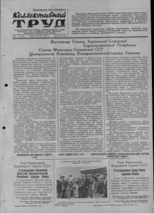 2. КОЛЛЕКТИВНЫЙ ТРУД 26 мэя 1$54 годэ, ( 1782) Верховному Совету Союза ССР Совету Министров Союза ССР Центральному Комитету Коммунистической партии Советского Союза Юбилейная сессия Верховного Совета Украинской ССР, посвященная великому торжеству— 300-летию воссоединения Украины с Россией, от лица рабочих, колхозников, интеллигенции и всех трудящихся Украинской Советской Социалистической Республики сердечно благодарит Верховный Совет Союза ССР, Совет Министров Союза ССР, Центральный Комитет Коммунистической партии Советского Союза за теплые слова приветствия украинскому народу по случаю великого национального праздника украинского, русского и всех братских народов СССР и выражает Президиуму Верховного Совета Союза ССР, Совету Министров СССР, Центральному Комитету Коммунистической партии Советского Союза горячую любовь и беззаветную преданность. Веками боролся украинский народ против иноземных поработителей— польской шляхты, турецко-татарских орд, за воссоединение с братским русским народом. В этой борьбе украинский народ всегда видел в русском народе верного своего союзника и надежного защитника. Триста лет тому назад на славной Переяславской Раде украинский народ принял историческое решение о воссоединении Украины с Россией. Объединение двух братских народов умножило их силу в борьбе против общих врагов— царского самодержавия, помещиков и капиталистов, великодержавных шовинистов и украинских националистов, против всех иноземных захватчиков, зарившихся на наши земли. Решающее значение для дальнейшей судьбы украинского народа, как и всех народов СССР, имело появление на исторической арене российского пролетариата и его боевого авангарда— Коммунистической партии, созданной и выкованной гениальным Лениным. Коммунистическая партия привела народы нашей страны к всемирно-исторической победе Великой Октябрьской социалистической революции. Украинский народ первым вслед за русским народом пошел по пути Октября и под руководством партии создал национальное суверенное Советское государство, положив этим начало новой и действительно славной эпохи своей истории. Благодаря мудрей политике Коммунистической партии и Советского правительства украинский народ осуществил свою многовековую мечту о воссоединении всех украинских земель в едином государстве. Тесно сплоченный вокруг Великой Коммунистической партии и ее Центрального Комитета, украинский народ вместе со всеми народами нашей страны уверенно идет вперед к торжеству коммунизма. В дни всенародного торжества украинский народ от всего сердца славит своего родного брата— великпй русский народ, славит не- рушпмую дружбу всех советских народов, являющуюся источником силы и могущества Советского государства, основой процветания Советской Украины— неотъемлемой и составной части Великого Советского Союза. Трехсотлетие воссоединения Украины с Россией— это праздник нерасторжимой дружбы русского, украинского и всех народов Советского Союза, торжество ленинско- сталинской национальной политики Коммунистической партии, в основе которой лежит учение великого В. И. Ленина о полном равноправии и содружестве народов. Рабочие, колхозники, трудовая интеллигенция, весь украинский народ своим героическим трудом борется за осуществление задач, поставленн