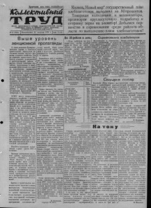 Пролертиаи всех стран, соединяйтесь!' 1CcUM4emu0uBui ОРГАН КАРАСУКСКОГО РАЙКОМА КОММУНИСТИЧЕСКОЙ ПАРТИИ СОВЕТСКОГО СОЮЗА И РАЙОННОГО СОВЕТА ДЕПУТАТОВ ТРУДЯЩИХСЯ, НОВОСИБИРСКОЙ ОБЛАСТИ № 83 (1820) Воскресенье, 22 августа 1954 г. Цена 15 коп. Колхоз,, Новый мири государственный план хлебозаготовок выполнил на 80процентов. Товарищи колхозники и механизаторы, организуем круглосуточную подработку и отправку зерна на элеватор! Добьемся первенства в соревновании среди районов об ласти по выполнению плана хлебозаготовок! Ж В ыш е у р о в е н ь лекционной пропаганды В своих решениях Коммунистическая партия и Советское правительство определили неотложные задачи крутого развития сельского хозяйства. Для их решения, прежде всего, требуется усиление политической и организаторской работы в массах. Однако некоторые партийные, профсоюзные и комсомольские организации еще крайне недостаточно занимаются разъяснением политики партии и правительства, направленной на укрепление нашей могучей Родины, на дальнейший расцвет жизни трудящихся. Далеко, например, не использует всех имеющихся сил и возможностей для поднятия агитационно-массовой и партийно-политической работы в массах партийная организация Карасукской МТС (секретарь т. Титоренко). В МТС много специалистов сельского хозяйства с высшим и средним образованием, есть члены общества по распространению научно-политических знаний, но в тракторных бригадах и на животноводческих фермах колхозов зоны станции не только не читаются лекции и доклады, но н не проводятся беседы, читки газет. В ряде мест даже нет агитаторов. В большинстве тракторных вагончиках и токах отсутствует наглядная агитация: лозунги, плакаты и т. д., которые призывали бы к быстрейшему проведению уборки урожая и без потерь, к досрочному выполнению плана хлебозаготовок. Но почему-то т. Титоренко такое положение не тревожит. Не видно в машинно-тракторной станции роли комсомольской и профсоюзной организаций. Подобное положенно наблюдается в ряде других МТС п колхозов. Проводя агитационно-массовую работу, парторганизации совхоза «Октябрь», колхоза «Маяк Ильича» и некоторые другие крайне мало уделяют внимания пропаганде научно- атенстпческпх знаний. Они, видимо, не осознали важности борьбы с пережитками капитализма в сознаепп некоторых людей, примиренчески относятся к распространению различного рода предрассудков и суеверий. Партия п правительство последовательно проводят в жизнь мероприятия, обеспечивающпе дальнейший подъем культурного уровпя трудящихся. Для более быстрого осуществления этих мероприятий необходимо повсеместно развернуть распространение естественно-научных знаний, показ достижений советской науки, техники и культуры, разоблачая реакционную сущность религии и ее обрядов. Важнейшую роль в воспитании занимают наши школы. В них закладываются основы научного миропонимания у подрастающего поколения. Уделяя особое внимание воспитанию учащихся в духе воинствующего материализма, органы народного образования, наша славная армия учителей, партийные, комсомольские и профсоюзные организации призваны широко развернуть науч- но-атеипическую пропаганду среди всего населения. Нужно признать, что отдельные школы, как Октябрьская, Троицкая и другие, еще недостаточно занимаются воспитанием учащейся молодежи. Здес