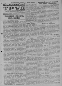 3. КОЛЛЕКТИВНЫЙ ТРУД 24 сентября 1954 года, № 9? Завысокие показатели— почетные грамоты На днях исполком районного Совета депутатов трудящихся объявил благодарность п наградил почетными грамотами группу комбайнеров, добившихся с 15 по 20 сентября напвысшей выработки на уборке урожая. Из Карасукской МТС награждены водители комбайнов «Сталинец-6» Ф.Т. Мирошниченко и В, Я. Оль* хов. Первый из них убрал за пятидневку 107 гектаров и намолотил 1.842 центнера пщевпцы, а второй— 101 гектар. Самой высокой выработки по Октябрьской МТС добились комбайнеры А.Н.Бер и Я.И. Кром. Работая на сцепе, т. Вер убрал 203 гектара. Тов. Кром на машине «Сталинец-1» скосил 101 гектар хлебов. За достигнутые трудовые успехи они получают почетные грамоты. Из Хорогаинской МТС грамотами награждены ком- байноры И. И. Ульман и В. К. Погребпцкий, каждый из которых за пятидневку убрал более чем по сто гектаров зерновых. В соревновании комбайнеров Студеновской МТС с 15 по 20 сентября первенство занял Ф. И. Головатый, убравший сцепом 169 гектаров, а в совхозе «Октябрь» комбайнер К. Е. Щанкпн скосил «Сталинцем-6» 120 гектаров хлебов. Они также награждены почетными грамотами. НАСТОЯЩИЕ ПОМОЩНИКИ С большим энтузиазмом трудятся на подработке зерна в колхозе имени Жданова 27 учащихся восьмого класса Карасукской средней школы. По прибытию в колхоз преподаватель Иван Игнатьевич Васильев для лучшего руководства разбил учащихся на звенья, назначил лучших ргбят руководителями звеньев. Впереди идут звенья Рани Гаращенко и Фаины Ка- лачпковой. Особенно отличаются в работе Ваня Скрип- кин, Зоя Порох, Эмилия Лелль, систематически ое- p. выполняющие задавпя. Ежедневно каждый школьник вырабатывает по 1— 1,5 трудодня. Благодаря слаженной работе школьников не приходится долго стоять автомашинам под разгрузкой и погрузкой зерна. Проходит 10— 15 минут, п машина отправляется в путь. Интересно п весело проводят учащиеся свободное от работы время. Оип и г рают в домпно, шашки, волейбол, читают свежие га зеты. Сейчас проводится шахматный турнпр на первенство класса. Ребята коллективно читают кнпгу «Захар Беркут». Тепло отзываются колхозники о преподавателе т. Васильеве, который су мел хорошо организовать труд детей, и благодарят учащихся за оказываемую ПОМОЩЬ. В. Деренок, инструктор РК КПСС. Осенью в поле немало дела, каждый нас используй умело! Федору Шнайдеру снова оставлено переходящее красное знамя Комбайнер Октябрьской МТС Федор Федорович Шнайдер машиной «Сталинец-6» у б рал на 20 сентября 622 ге ктара , нам олотил 12.130 центнеров зерна, сэкономил 234 килограмма горючего, обеспечил хорошее качество жатвы. Рассмотрев итоги социалистического соревнования комбайнеров МТС, президиум обкома профсоюза рабочих и| служащих сельского хозяйства I и заготовок снова присудил первенство и оставил переходящее красное знамя обкома профсоюза и облсельхозуправ- ленпя коллективу комбайнового агрегата т. Шнайдера. Почему срывается график хлебосдачи Партия и правительство в этом году оказали большую помощь колхозу «Новаясемья», чтобы своевременно провести уборку урожая. Никогда еще артель не располагала такпм количеством техники. На убор ке трудится много горожан. Все это позволяет колхозу досрочно завершить уборку урожая п хлебозаготовки. Однако на 21 сентября здесь план обязательных поставок зерна государству выполнен л