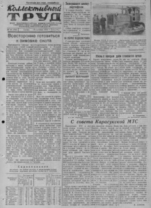 Пролетарии всехстран, соединяйтесь! ................... КЬи*ШстиСшгй ОРГАН КАРАСУЕСКОГО РАЙ1 OVA КОИИУВГПИЧЕСЕСЯ ПАРТИИ СОВЕТСКОГО СОЮЗА И РАЙОРВОГО СОВЕТА ДЕПУТАТОВ ТРУЛЯШИХСЯ, НОВОСИГ.ИРСКОЙ ОБЛАСТИ МЬ 105 (1842) Среда, 13 октября 1954 Г- | Цена 15 к. Всесторонне готовиться к зимовке скота Приближается суровая сибирская зима—самый сложный п ответственный период в ж и вотноводстве. Для успешного проведения зимовки скот должен быть обеспечен необходимым запасом кормов, теплыми и благоустроенными помещениями. Некоторые колхозы района, претворяя в жизнь исторические постановления партии п правительства, немало сделали для подъема животноводства. Сельхозартели им. Куйбышева, «Пятилетка» на 1 октября выполнили план по всем видам продуктивного скота. В этих хозяйствах значительно возросли доходы от реализации животноводческой продукции. В этих колхозах принимаются все меры, чтобы обеспечить скоту теплую и сытую зимовку. Однако наш район по развитию животноводства и особенно повышению его продуктивности значительно отстает. Хуже всех обстоит дело' в колхозе имени Джамбула. Здесь план по поголовью крупного рогатого скота выполнен только на 61 процент, по коровам— на 73 проц. и по овцам—на 68 проц. Почти такое же положение в колхозе им. Жданова. Особенно следует отметить нерадивее отношение некоторых руководителей к поголовно овец. Особую ретивость в разбазаривании овец проявляют руководители колхозов им. Максима Горького, «Новая семья», им. Джамбула. Не выполнены также планы по надою молока и настрпгу шерсти. На фуражную корову в среднем по району надоено по 1.321 к г молока прп плане 1.650. А в колхозе «Жол Сталина» надой составляет всего лишь 981 литр. Не выполнен п наполовину план мясопоставок. тол!ко 75 процентов сдано молока в счет обязательств. Можно без преувеличения казать, что невыполнение го- L ______ сударственного плана развития животноводства в большей степени явилось следствием неудовлетворительной подготовки и плохого содержания скота в прошедшую зиму. Однако этот урок не везде учитывается нынче. План заготовок сена выполнен менее чем на 70 проц., а закладки силоса лишь ва 45 проц. Только совхоз «Октябрь» и колхоз «Путь к коммунизму» полностью заготовили грубые корма. А по сочным кормам выполнили за дание лпшь совхоз «Октябрь» и колхозы «Пятилетка» и «Новый мпр». Хуже всех проводится работа по накоплению кормов в колхозах зоны Черно-Курьин- ской МТС, где план заготовки сена выполнен немного более 50 проц., а силосования— на 27 проц. Мало что сделано по улучшению содержания скота. Новых скотоиомещенпй в этом году построено п сдано в эксплуатацию менее 20, а по плану предусматривалось построить 70. Положительные результаты в полеводстве в этом году позволяют и обязывают нас совершить крутой поворот к животноводству и коренным образом поправить дела в этой важнейшей отрасли хозяйства. Б оставшееся до наступления зимы время необходимо резко усилить заготовку кормов. Руководители МТС, колхозов должны выделить максимальное количество людей, машин, транспортных средств для косовицы, скирдования кормов п подвозки их к фермам. План накопления кормов должен быть выполнен каждым хозяйством к 20 октября. К этому же сроку необходимо закончить подготовку скот* помещений. Подготовка к зимовке скота должна сочетаться с настойчивой борьбой за безусловно