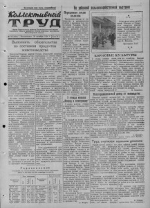 f o - v Ч Иродетраи всех стран, соединяйтесь! КЬимкхпивнвил Орган Карасукгкого райкома Коммунистической партии Советского Союза и районного Совета депутатов трудящихся Новосибирской области № по (1847) | Воскресенье, 24 октября 1954 г. | Цена 15 к. Выполнить обязательства по поставкам продуктов животноводства Коммунистическая партия и Советское правительство, проявляя повседневную заботу об улучшении материального благосостояния трудящихся, поставили задачу —в ближайшие 2—3 года создать в стране изобилие промышленных и продовольственных товаров. Это указание партии успешно осуществляется. На примере колхозов нашего района видно, что по сравнению с прошлым годом доходы от полеводства и животноводства в 1954 году—первом году претворения в жизнь исторических решений партии по сельскому хозяйству, значительно возросли. Зажиточнее стали жить колхозники. В ответ на эту отеческую заботу партии и правительства труженики села полны решимости досрочно рассчитаться с государством по обязательным поставкам продуктов полеводства и животноводства и излишки продать в госзакуп. В авангарде этого патриотического дела идут члены артели имени Куйбышева (председатель т. Трунов). Широко развернув предоктябрьское социалистическое соревнование за успешное окончание сельскохозяйственного года, они уже перевыполнили свои обязательства перед Родиной по поставкам мяса, молока, шерсти, кожевенного сырья. Несколько сот центнеров доброкачественных продуктов животноводства колхозом и колхозниками отправлено в госзакуп. Успешно справляются с планом мясопоставок колхозы имени Андреева, им. Сталина, „Новая семья* и другие. Однако в целом по району заготовки и закупки мяса проходят неудовлетворительно. Отдельные колхозы справились со своими обязательствами всего лишь на 53—65 процентов. В их числе сельхозартели им. Жданова, им. Буденного, „Жол Сталина", „Маяк Ильича". Особенно плохо идет сдача государству свинины колхозами „Маяк Ильича", им. Калинина, „Пятилетка". Еще хуже обстоит дело с заготовками молока. Большинство колхозов плохо выполняет свои обязательства перед государством. В неудовлетворительном ходе заготовок и закупок продуктов животноводства в первую очередь повинен райуполминзаг, не сумевший должным образом организовать эту работу. Агенты тт. Красильников и Абакумов днями отсиживаются дома, совсем не ведут разъяснительной работы среди населения. Однако уполмин- заг мирится с их бездеятельностью; не оказывает он практической помощи в проведении заготовок местным Советам, нетребовательно относится к заготовительным организациям: конторе „Заготскот", „Главмолоко" и другим. Наш район имеет все возможности досрочно выполнить план заготовок и закупок продуктов животноводства. Необходимо на решение этой задачи направить все усилия партийных, советских и заготовительных организаций. Долг руководителей колхозов, МТС и совхозов, всех трудящихся района—37-ю годовщину' Великого Октября встретить завершением плана заготовок и закупок мяса, молока, шерсти и других продуктов животноводства. С о р е в н о в а н и е ко. 1Хозов по выполнению обязательных поставок .мяса и .молока па 20 октября (в проц). Наименование колхозов •—% ъ Проц. выполнения Наименование колхозов Проц. выполнения О О ее я • ЕГ SS3 £ Я ес оCQ О 54 О Ч О я О О ее Я -1 н• SSC 3 Q ей о О 