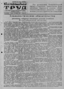 Пролетарии всех стран, соединяетесь 1 — . « Л » - - ............................... ........... . иМ Й Й И * И * Орган Карасукекого райкома Коммунистической партии Советского Союза и районного Совета депутатов трудящихся Новосибирской области * ' V - ' • _ > Под руководством Коммунистической партии и Советского правительства будем настойчиво бороться за создание обилия сельскохозяйственных продуктов в стране, за новые успехи в строительстве коммунизма! № 123 (1860)| Среда, 24 ноября 1954 Г. [.Цена 15 к, Социалистические обяз а т ельс т ва участников совещания передовиков сельского хозяйства Колхозы, МТС и совхозы страны, выполняя решения сентябрьского, февральско-мартовского и июньского Пленумов ЦК КПСС о крутом подъеме сельского хозяйства, добились серьезных успехов по увеличению производства зерва и других продуктов. Значительный вклад в осуществление программы мощного подъема сельского хозяйства внесли колхозы, МТС и совхозы Новосибирской области. Посевные площади всех культур в этом году увеличились на 351 тысячу ге к таров по сравнению с прошлым годом. Подвято целинных и залежных земель 666 тысяч гектаров. Улучшили свою работу многие МТС. На полях колхозов и совхоэов выращен и собран хороший урожай. Средняя урожайность зерновых по колхозам Кочновского района составила 20,2 центнера с гектара, Новосибирского — 17,9, Ордынского- 17 ,7. Во многих колхозах и совхозах выращен еще более высокий урожай: в колхозах зоны Решетовской МТС — по 21, 3 центнера, Черновской— по 20, 8; в колхозе «Лучший путь», Ко- ченевского района, на 308 гектарах залежи получено по 43,2 центнера пшеницы; в колхозе имени Сталина, этого же района, на 101 гектаре — но 42, 4 центнера пшеницы с гектара; в колхозе пмени Ленина, Ордынского района, урожай пшеницы с 2.901 гектара составил по 23 центнера. Колхозы и совхозы области значительно перевыполнили план заготовок и закупок хлеба и своп соцналпстичос- кпе обязательства. На 15 ноября сдано государству 75 миллионов пудов хлеба, пли на 52,3 миллиона пудов больше, чем в прошлом году. По результатам работы за 1954 год 19 районов, 75 МТС, более половины колхозов, многие совхозы и тысячи предовпков сельского хозяйства области завоевали право участия на Всесоюзной сельскохозяйственной выставке. Творцамп достигнутых успехов являются замечательные передовики- трактористы, комбайнеры, механизаторы МТС и совхозов, колхозники и колхозницы. Знатный комбайнер Новой МТС, Купинского района, Георгий Николаевич Гуляев сцепом двух машин «Сталинец-6» убрал 1.313 гектаров и намолотил 17.372 центнера зерва. Комбайнерка Краснозерской МТС Матрена Ивановна Милодавова сцепом двух комбайнов «Сталинец-6» намолотила 16.208 центнеров, комбайнер Решетовской МТС. Дмитрий Маркович Некряч сцепом двух машин намолотил 21.769 центнеров. Тракторист Авангардной МТС Петр Егорович Глок на тракторе «С-80» выработал 2.298 гектаров. Трактористка Горносталевской МТС т. Бережная на тракторе «ДТ-54» выработала 1.484 гектара. К числу лучших доярок, завоевавших первенство, относятся Анастасия Николаевна Орлова из колхоза.«Новая Н о в о с и б и р с к жизнь», Новосибирского района, получившая на корову 2.616 литров молока, доярка Гутопского совхоза Мария Ивановна Колупаева, надоившая по 4. 250 литров. Мастер овцеводства, чабан совхоза «Советская Сибирь» т. Вельдияров получил от каждых 100 овец 133 ягненка и по 5,33 килограмма шерсти на овц