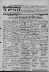 f > г 9 января 1355 года, № 4 коллективный труд Об утверждении окружных избриательных комиссий по выборам в Карасукский городской Совет депутатов трудящихся Решение № 39 исполнительного комитета Карасукского городского Совета депутатов трудящихся от 5 января 1955 года (ПРОДОЛЖЕНИЕ. На* Секретарь окружной избирательной комиссии КРУПСКИХ Илья Митрофанович— от рабочих и служащих Карасукской ванбазы. Члены окружной избирательной комиссии: ОБУХОВА Анна Петровна— от рабочих и служащих городского Совета, ХАТЮШИНА Мария Семеновна—от рабочих и служащих Карасукской начальной школы № 3. Почтовый избирательный округ №17 Председатель окружной взби- Ь ательной комиссии ЧЕХ Петр 'антелеевич — от первичной коммунистической организации Карасукского Сельпо, Заместитель председателя окружной избирательной комиссии КАНАШОВ Федор Кузьмич—от рабочих и служащих Карасукской винбазы, Секретарь окружной избирательной комиссии БОГОМОЛОВА Мария Кузьминична—от рабочих и служащих Карасукского РАЙФО. Члены окружной избирательной комиссии: ЕГОРОВ Павел Андреевич— от профсоюзной организации РПС ГАИДАБУРА Ефросцнья Яковлевна—от рабочих и служащих городского Совета. Почтовый избирательный округ № 18 Председатель окружной избирательной комиссии БУЛГАКОВ Лаврентий Никифорович — от рабочих и служащих конторы «Заготжпвсырье», Заместитель председателя окружной избирательной комиссии НИКИТЕНКО Нина Исаковна—от коллектива учителей средней школы, Секретарь окружной избирательной комиссии ДЮДЯ Полина Романовна— от рабочих и служащих Карасукского СМУ. Члены окружной избирательной комиссии: СУХОСЫР Филипп Федосее- вич—от коллектива учителей средней школы, КАЛИНА Иосиф Демьянович—от рабочих и служащих городского Совета. Карасукский избирательный округ № 19 Председатель окружной избирательной комиссии ЖАН- ГУТТИНОВ Айдабек—от. коллектива учителей средней школы, Заместитель председателя окружной избирательной ко миссии НЮХАЛОВ Владимир Петрович—от рабочих и служащих артели «Энергия», Секретарь окружной избирательной комиссии СМИРНОВА Алевтина Сергеевна—от рабочих и служащих Карасукского ало на 2-й странице) Члены окружной избяра- тельной комиссии: ДАНИЛУШКИНА Александра Яковлевна—от рабочих и служащих Карасукского Госбанка, МАЛЯРЕНКО Иван Григорьевич— от рабочих и служащих артели «Энергия». Майский избирательный округ № 20 Председатель окружной избирательной комиссии РАЗУМОВСКИЙ Василий Константинович—от рабочих и служащих артели «ЭНЕРГИЯ», Заместитель председателя окружной избирательной комиссии ГРИЦАН Нина Федоровна - о т комсомольской организации Карасукского пищеком- бивата, Секретарь окружной избирательной комиссии ХОРОШАЕВ Василий Иванович—от рабочих и служащих артели «Энергия». Члены окружной избирательной комиссии: КОПЕЙКИН Николай Иванович—от рабочих и служащих артели «Энергия», БУЛГАКОВА Зинаида Афанасьевна—от рабочих и служащих артели «Энергия». Урицкий избирательный округ № 21 Председатель окружной и з бирательной комиссии ПУШКАРЕВ Иван Георгиевич— от рабочих и служащих Карасукского гортопа, Заместитель окружной избирательной комиссии ПЧЕЛИН- ЦЕВ Сергей Дмитриевич— от рабочих и служащих Карасукского гортопа, Секретарь окружной избирательной комиссии БУРАВЛЕВ Федор Иванович—от рабочих и с