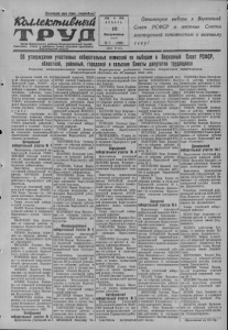 Пролетарии всех стран, соединяйтесь! КЬим$гпм£ний Орган Карасуксвого райкома Коммунистической партии Советского Союза и районною Совета депутатов трудящихся ____________________ Новосибирской области 1955 * 1955 Я Н В А Р Ь т Воскресенье № 7 (1882) Цена 15 коп. Ознаменуем выборы в Верховный Совет РСФСР и местные Советы всесторонней готовностью к весеннему с е в у ! Об утверждении участковых избилрьаынтех комиссий по вырбмао в Верхвоынй Совет РСФСР, областной, районый, городской и сельские Советы депутатов трудящихся Реш ение исполнительного комитета Карасукского районного Совета депут ат ов т рудящ ихся , Новосибирской области, от 12 января 1955 года На основании статей 43, 44 и 45 «Положения о выборах в Верховный Совет РСФСР» и статей 74 п 75 «Положения о выборах в краевые, областные, окружные, районные, городские, сельские и поселковые Советы депутатов трудящихся РСФСР»' исполнительный комитет Карасукского районного Совета депутатов трудящихся р е ш и л : Утвердить участковые избирательные комиссии общие по выборам в Верховный Совет РСФСР, областной, районный, городской и сельские Советы депутатов трудящихся в составе следующих представителей общественных организаций и обществ трудящихся: Центральный избирательный участок №1 Председатель участковой избирательной комиссии РЕКИ- ЧИНСКИН Николай Алексеевич— от первичной коммунистической организации отдела культуры райисполкома, Заместитель председателя участковой избирательной комиссии ВОРОНЦОВ Матвей Ковдратьсвпч— от собрания работников Карасукского рай- финотдела, Секретарь участковой избирательной комиссии ПРОСКУРИН Павел Титояич— от собрания работников Карасукского отделения Госбанка. Члены участковой избирательной ^комиссии: ПАЛИИ Михаил Никитич— от собрания рабочих и служащих Карасукского пункта «Загот- зерно», ИВАНЧЕНКО Петр Денисович— от собрания рабочих п служащих Карасукского пункта «Заготзерно», ЧЕРНОВ Владимир Акимович— от собрания рабочих и служащих Карасукского пункта «Заготзерно», КИСЕЛЕВА Надежда Ивановна— от общего собрания рабочих и служащих Карасукского пункта «Заготзерно», КРОШКИНА Нина Ильинична— от первичной коммунистической организации Карасук- ской средней школы, ШУМКОВ Харитон Взади- мпрович— от первичной коммунистической организации Ка- расукгкпй средней школы, БОТИНА Надежда Ивановна— от первичной организаций Всесоюзного Ленинского Коммунистического Союза Молодежи Карасукского СМУ, НИКИФОРОВА Любовь Андреевна— от первичной организации Всесоюзного Ленинского Коммунистического Союза Молодежи Карасукского СМУ. Октябрьский избирательный участок №2 Председатель участковой избирательной комиссии ПИЛИПЕНКО Алексей Тимофеевич— от собрания рабочих и служащих Карасукского рыбоучастка, Заместитель председатзля участковой избирательной комиссии ПОТЁМКИНА Ленислава Степановна—от собрания медицинских работников Кара- сукской районной больницы, Секретарь участковой избирательной комиссии КРАВЧЕНКО Тимофей Васильевич— от собрания рабочих и служащих Карасукского райкомхоза. Члены участковой избирательной комиссии: ГРЕЧКО Василий Леонтьевич— от собрания рабочих и служащих Карасукского райкомхоза, ТОЛСТЯКОВ Петр Селивер- стович—от собрания рабочих и служащих Карасукского райкомхоза, КРАСНОВА Екатерина Алексеевна—от собран