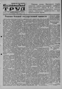 Решения сессии Верховного Совета встретили горячее, единодушное одобрение всего советского народа. В этом находят новое яркое выражение нерушимое единение народа, Советского правительства и Коммунистической партии. Пролетарии всм стран, сопинийтесь! КЬМШсти&шй Т Р У Д Орган Карасувского райкома Коммунистической партии Советского Союза н районного Совета депутатов трудящихся _______ Новосибирской области_____________________ № 20 (1895) | Среда, 1 6 февраля 1955 года |цеиа 15 коп. Решения большой государственной важности Девятого февраля закончила работу вторая согсия Верховного Совета СССР. Высший орган государственной власти нашей страны обсудил ряд важнейших вопросов внутренней и международной политики и принял по этим вопросам соответствующие решения. Утверждены Государственный бюджет СССР на 1955 год и Указы Президиума Верховного Совета СССР. Принято постановление о назначении Председателем Совета Министров СССР выдающегося партийного и государственного деятеля— товарища Н. А. Булганина. Всесторонне обсужден доклад Первого Заместителя Председателя Совета Министров и Министра иностранных дел СССР товарища В. М. Молотова о международном положении и внешней политике Правительства СССР. Верховный Совет одобрил внешнюю политику Советского правительства и принял Декларацию, обращенную к народам и парламентам всех государств с призывом не допустить . развязывания новой войны, умножить усилия, направленные к поддержанию и укреплению мира. На совместном заседании обеих палат Верховного Совета Председатель Совета Министров СССР Н. А. Булганин выступил с речью, в которой осветил основные вопросы предстоящей деятельности Советского правительства. Утвержденный Верховным Советом СССР Государственный бюджет СССР полностью отвечает задачам, стоящим перед нашей страной в завершающем году пятой пятилетки. В 1955 году общий объем валовой продукции нашей промышленности возрастет по сравнению с 1954 годом более чем па 9 пр< центов, а по сравнению с 1950 годом- последним годом четвертой пятилетки — на 80 процентов. Это означает, что пятый пятилетний план промышленность СССР выполнит досрочно. В еще больших размерах возрастет продукция тяжелой промышленности: она увеличатся са период пятой пятилетки на 84 процента. Линия на преимущественное развитие тяжелой индустрии есть единственно правильная линия, она оправдана всем ходом социалистического строительства в нашей стране и отвечает коренным жизненным интересам Советского государства о народа. Ускоренное развитие тяжелой индустрии надежно обеспечивает непрерывный подъем и всех других отраслей народного хозяйства, в том числе сельского хозяйства, легкой и дшцевой промышленности, которые могут двигаться вперед лишь на основе неуклонного роста тяжелой индустрии. Утвержденный Верховным Советом СССР бюджет на 1955 год предусматривает вложение значительных средств в социалистическое сельское хозяйство. Эти вложевия позволяют сделать крупный шаг в осуществлении поставленной январским Пленумом ЦК КПСС задачи— довести в ближайшие пять— шесть лет ежегодный сбор зерна до десяти миллиардов пудов и увеличить производство основных продуктов животноводства в два— два с лишним раза. Осуществление великих задач, поставленных Коммунистической партией перед промышленностью и сельским хозяйств