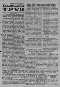 Й'рмэдри всех ctpat , сотая ttecbl КЬимшпиВнеи* Т Р У Д Орган Еарасувского райкома Коммунистической партии Советского Снова в райоввою Совета депутатов трудящихся ________ Новосибирской области №28 (19озч] Воскресенье, 6 марта 1955 года | цена 15 коп. Усилить темпы ремонта тракторов Коммунистическая партия и Советское правительство в своих решениях поставили перед работниками сельского хозяйства ответственные задачи дальнейшего увеличения в стране зерна и продуктов животноводства. Январский Пленум ЦК КПСС выдвинул как неотложную задачу в ближайшие пять—шесть лет довести валовой сбор зерна до 10 миллиардов пудов в год и увеличить производство основ- внх продуктов животноводства в два— два с лишним раза. Колхозы района в 1955 году должны будут увеличить посев всех культур на 24 тыс. ге к таров, значительно расширяется посевная площадь в совхозах. Для выполнения этого потребуется провести большую работу по подготовке людей, техники и других материальных средств. Успех дела будет зависеть прежде всего от того, насколько производительно будет исаользоваться машинно- тракторный парк. Учитывая решающую роль тракторов на весеннем сеие, коллективы передовых МТС принимают все меры к быстрейшему завершению ремонта не только тракторов, но и других сельхозмашин. Механизаторы Чернокурь- инской станции (директор т. Бугай) брала обязательство завершить план ремонта тракторов ко дню выборов. Свое слово они сдержали. Эта победа досталась не Случайно. Дирекцией был разработан уплотненный график ремонта каждого трактора, заранее проявлена забота о приобретении запасных частей, работа велась в несколько смен. Партийная организация возглавила социалистическое соревнование за перевыполнение сменных норм каждым ремонтником. В ававгарде соревнующихся шли коммунисты. Борясь за сроки, инженерно- технические раблнвки особое внимание уделяли качеству ремонта каждой машины. Сейчас механизаторы наращивают темпы в подготовке прицепного инвентаря, в том числе сеноуборочных машин и комбайнов. Однако в других МТС дело с ремонтом обстоит значительно хуже. Особенно провальное положение создалось в Сту деновской станции (директор т. Козлов, главный инженер т. Светланов). Здесь на 1 марта не отремонтирована и поло вина тракторного парка. У руководителей этой МТС укоренилась вредная практика оправ дывать свою неразворотливость разного рода объективными причинами отсутствием средств, запасных частей, благоустроенной мастерской и г. д. Между тем в наличии всех этих неполадок повинны прежде всего они сама. Не лучше дело с ремонтом и у хорошинцев Из 71 трактора они подготовили только 42. Не выполнил свои предвыборные обязательства коллектив Октябрьской МТС. Вместо завершения ремонта эта стан ция ко дню выборов выполнила план всего лишь на 65 процентов. Неудовлетворительно готовится техника и в совхозах. В совхозе «Октябрь», например, не отремонтирована половина тракторов, вз 46 плугов подготовлено только 15, а из 39 сеялок— 13. Такие темпы ремонта объясняются прежде всего плохой организацией труда, отсутствием конкретного руководства ремонтом со стороны инженерно- технических работников. Ве- редко наблюдаются факты, когда ремонтники работают в половину нагрузки, а иногда совсем уходят из мастерской, не имея работы. Сроки ремонта уходят, приближается начало полевых 