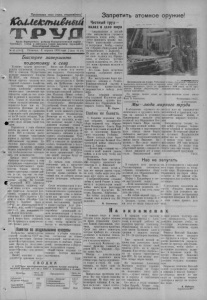 8 апреля, 1955 года № 42 КОЛЛЕКТИВНЫЙ ТРУД Повышать продуктивность животноводства ЛУЧШАЯ ФЕРМА Овцеферма колхоза имени Куйбышева, которой заведует Сергей Яковлевич Дыганенко, по праву считается передовой в артели. В прошлом году она дала 325 тысяч рублей дохода. Сейчас здесь идет массовый окот овец. Чабаны организовали круглосуточное дежурство, стремятся не допустить ни единого случая падежа нарождающегося молодняка. Образцы в труде показывают чабаны Мария Ильинична и Мария Кузьминична Шапоренко. Постоянная забота об общественном животноводстве позволила уже сейчас иметь колхозу на 100 гектаров наш ни, лугов и пастбищ по 39 овец Механизируем водоснабжение Выполняя постановление январского Пленума ЦК КПСС, коллектив нашей МТС проявляет постоянную заботу о подъеме общественного живот- новодства в обслуживаемых колхозах. Большое внимание уделяем механизации трудоемких работ на фермах. В 1955 году было решено механизировать водоснабжение в колхозах «Новая семья» и имени Амангельды. Это обязательство выполнено. Механизирована подача воды на фермах колхоза «Новая семья», недавно закончены работы в колхозе имени Амангельды. Это позволило каждый час давать на фермы 4.200 литров воды, что полностью удовлетворяет потребности общественного животноводства. Хорошо потрудились на механизации работ по водоснабжению бригадир тракторной бригады т. Дегтярев и тракторист т. Бешемтаев. М. Кри кунов , механик Чернокурьивской МТС. Передовые доярки района по надою молока в литрах на корову с / октября 1954 г. по I апреля 1955 г. ПО СОВХОЗАМ Вертунова Н. Н. (Им. Дзержинского) Бондарь А. Д. (Им. Дзержинского) Стаднпкова Е. Ф. (Им. Дзержинского) Гасплова Н, Т. (Им . Дзержинского) Бухмиллер Е. Е. (.О к тябр ь " ) ПО КОЛХОЗАМ Красовская А. И. (Им. Молотова) Шнайдер Э. А. (.Пятилетка*) Крет А. К. („Новая семья") Швпнд М. П. (Им. Андреева) Свинт М. П. (Им. Андреева) Снсемкина Л. В. („Пятилетка") Шиц М. X. (Им. Молотова) Таран 3. М. (Им . Андреева) Письма в редакцию Ш 5 1104 1049 1015 922 719 641 609 605 605 588 577 541 Досуг молодежи Скучно проводит свободное от работы время молодежь совхоза им. Дзержинского. Даже на центральной усадьбе, где имеется клуб и библиотека, молодежи нечем заняться, потому что оба эти учреждения в последнее время бездействуют. В клубе после избирательной кампании не прочитано ни одной лекции пли доклада, не работают кружки художественной самодеятельности, спортивные секции. Более месяца не организован закрыта библиотека. Еще меньше проявляется заботы о культурном отдыхе молодежи на фермах. Такое положение мало волнует комитет комсомола, председателя рабочкома т. Дударек и секретаря партийной организации совхоза т. Буленко. Они стараются сделать вид, что с культурно-массовой работой все благополучно. Ф. Пванец , В. Лукаш и другие. Мало заботятся о нуждах бригады Ки е в ска я область. Колхозники сельхозартели „Червона У краи на* Броварского района по перспективному плану должны увели чить поголовье крупного рогатого скота к концу I960 года до 1.100 голов. Животноводы уже в нынешнем году довели колхозное крупного рогатого скота до 1.050* голов. Для создания проч- Рс/сормовой базы колхоз в четыре раза увеличивает посевы к у курузы. В сельхозартели построен коровник из железобетонных конструкций, На снимке; внутренний вид нового коровника. Забытый участок Неприглядную картину представляет собой 
