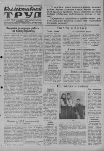 17 апреля 1955 года, As 46 КОЛЛЕКТИВНЫМ ТРУД 3. За высокую продуктивность животноводства!! * * * Используем внутренние резервы Претворяя в жизнь решения партии и правительства, наш колхоз добился некоторых успехов в развитии общественного хозяйства. В минувшем году выращен неплохой урожай зерновых, увеличилось производство продуктов животноводства. На каждые 100 гектаров сельскохозяйственных угодий получили больше, чем в 1953 году, мяса на 1,2 центнера, молока на 4,3 центнера, шерсти на 15 килограммов. Правление колхоза совместно с активом и специалистами сельского хозяйства тщательно проанализировало итоги прошлых лет и, обобщив имеющийся передовой опыт колхозников, выявило дополнительные резервы и возможности для увеличения производства зерна и продуктов животноводства на ближайшие пять лет. Своп усилия мы направим прежде всего на лучшее использование закрепленной за колхозом земли, на повышение производительности труда, снижение себестоимости сельскохозяйственных продуктов. Увеличение производства продуктов животноводства немыслимо без прочной кормовой базы. Партия и правительство указывают, что зерновое хозяйство является основой сельскохозяйственного производства, что без дальнейшего роста зернового хозяйства нельзя добиться подъема животноводства. С целью укрепления кормовой базы мы решили значительно расширить посевы зерновых культур и особенно кукурузы, повысить их урожайность. В 1953 году колхоз имел 5.287 гектаров посева, в том числе зерновых культур 2.869 гектаров. К 1960 году посевная площадь увеличится за счет освоения целинных и залежных земель до 6.357 гектаров, в том числе зерновых культур до 4.880 гектаров. Уже нынче производство кукурузы увеличим по сравнению с 1954 годом в шесть раз, а в .1960 году посеем кукурузы не менее 1200 гектаров на зерно п 350 гектаров на зеленый Корм. Чтобы поднять урожай сельскохозяйственных' культур, будем выполнять весь комплекс агромероприятий: проводить снегозадержание, применять органические и минеральные удобрения, сеять только сортовыми высокоурожайными семенами и в сжатые сроки. Решили принять все меры к тому, чтобы сократить сроки уборки до 10 рабочих дней и тем самым избежать потерь зерна от осыпания. Все это позволит к 1960 году в два раза увеличить валовой сбор зерна. Значительная часть его пойдет на фураж для общественного животноводства. Намечаем расширить посадку картофеля и бахчевых культур на корм скоту до 450 гектаров. Потребность скота в зеленом корме на пастбищах будет удовлетворяться за счет улучшения и более рационального использования естественных выпасов, а также посевов кукурузы. В ближайшие 3—4 года намечаем провести коренное улучшение лугов и пастбищ путем подсева на них многолетних трав. Внедрим загонную систему пастьбы. По нашим подсчетам все эти мероприятия позволят обеспечить общественное животноводство прочной кормовой базой. На 1 октября прошлого года в колхозе было 870 голов крупного рогатого скота, в том числе 271 корова. Средний удой на одну фуражную корову составлял 1.387 литров молока. Это очень низкий показатель. В увеличении выхода молока на 100 гектаров сельскохозяйственных угодий большую роль играет не только рост поголовья дойных коров, но и улучшение их породности. Расчеты показали, что при наличии имеющихся в колхозе нетелей и телок ежегодно будет приба