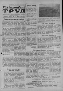2. КОЛЛЕКТИВНЫЙ ТРУД 25 мая 1955 года, № 62 Партийная жизнь Материал усвоен хорошо Марксистско-ленинское образование коммунистов является важнейшей составной частью идеологической работы партийных организаций. Это хорошо уяснили коммунисты мясокомбината и конторы «За- готскот». Здесь до 1954 года раздельно работали два кружка по изучению истории партии. В них были зачислены все коммунисты независимо от образования и общей подготовки. Нынче партийные организации более серьёзно подошли к организации учебы. Некоторые коммунисты изъявили желание повышать свои знания самостоятельно, для остальных был организован один кружок по изучению истории КПСС. В него записалось 8 человек. Пропагандистом был назначен управляющий конторой «Заготскот» т. Шашель. Он со всей серьезностью отнесся к партийному поручению. Читаемые им вводные лекции вызывали интерес у слушателей. Коммунисты хорошо готовились к занятиям, в собеседованиях принимали активное участие. Недавно проведенные здесь итоговые занятия показали, что слушатели хорошо усвоили пройденный материал. Приемщик скота В. И. Ивануха, например, всесторонне осветил вопрос о начале иностранной военной интервенции и первом периоде гражданской войны, секретарь парторганизации мясокомбината т. Ромасько обстоятельно рассказал о третьем походе антанты и его разгроме. Глубоко изучили постановление январского Пленума ЦК КПСС коммунисты тт. Желдобеков, Рубан, Пархоменко, комсомолец т. Шипп- цын. Итоговое занятие способствовало более прочному усвоению и закреплению полученных знаний. Вместе с тем следует заметить, что в процессе занятий недостаточно отводилось места вопросам текущей политики. Недостаточно было увязки изучаемого материала с конкретными практическими делами и задачами предприятий, на которых работают слушатели кружка. В будущем году коммунисты решили продолжать занятия в этом же кружке, а за летний период повторить слабо усвоенные темы, регулярно следить за газетами и посещать лекции, которые будут читаться при партбпблиотеке райкома партии. II. Кайгородцев. Проводятся политинформации Каждую неделю по четвергам рабочие и служащие райпотребсоюза собираются в красном уголке, чтобы ознакомиться с последними событиями в нашей стране, районе, за рубежом. Политинформации проводятся членами партии. руководителями райпотребсоюза по плану утвержденному партийной организацией. Я. Тюриков. Во все бригады рассылаются бюллетени Партийная организация совхоза им. Дзержинского совместно с дирекцией и рабочим комитетом профсоюза каждую пятидневку подводит итоги социалистического соревнования на весенних полевых работах тракторно-полеводческих бригад и трактористов. Бюллетени с итогами соревнования рассылаются во все брпгады. Победителям соревнования вручаются переходящее красное знамя и красный флажок «Лучший тракторист совхоза». С. Буленко. УВЕЛИЧИВАТЬ ПРОИЗВОДСТВОПРОДУКТОВЖИВОТНОВОДСТВА! Повышается продуктивность скота За высокие надои молока Па фермах совхоза «Октябрь» все шире развертывается соревнование доярок за повышение продуктивности молочного стада. Между бригадами заключены договоры социалистического соревнования, учреждено переходящее красное знамя, которое присуждается лучшей бригаде по итогам каждой пятидневки. Сейчас первенство в соревновании 