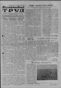 Пролетарии всех стран, соединяйтесь! KbJM4cjnu&HSiA Т Р У Д Орган Карасукского райкома Коммунистической партии Советского Союза и районного Совета депутатов трудящихся Новосибирской области №64 (1938)| Воскресенье, 29 мая 1955 г. | Цена 15 н. ■ '■ !— ’Im■ ■ и и ш а м ш м м м м д ш и м м м и и м и м ю и — и — — — Хорошо организовать обработку посевов пропашных культур Нынче колхозы и МТС района организованно и на более высоком агротехническом уровне, чем в прошлом году, ведут весенние полевые работы. Труженики социалистического сельского хозяйства знают, что сейчас для них нет более важной задачи, как успешно завершить сев яровых. Именно теперь, в дни сева, закладывается основа высокого урожая и тем самым предрешается дело дальнейшего крутого подъёма сельскохозяйственного производства. Но успешным севом только начинается борьба за высокий Мкрожай. В комплексе работ по тщащиваншо высоких урожаев исключительное значение имеет образцовый уход за посевами, особенно пропашных культур. Надо иметь в виду, что площади под пропашными культурами К нынешнем году значительно увеличились. Уже одно это требует от МТС п колхозов больших усилий п более высокой организованности в уходе за посевами этих культур. Обработка пропашных в этом году нуждается в особом внимании еще и потому, что в почве недостаточно влаги. Массовое применение получил в нынешнем году квадратно-гнездовой способ сева про- ^ишных, что позволит широко ЩРханизпровать работы по уходу за этими культурами, намного облегчить труд колхозников. Но это предъявляет повышенные требования к МТС, обязывает их своевременно подготовить п производительно использовать все материальные п технические средства обработки и обеспечить проведение ухода за посевами в лучшие сроки и с высоким качеством. Именно так поняли свою задачу руководители Карасук- ской МТС. Сейчас настало лучшее время для боронования посевов кукурузы, так как на полях уже появились сорняки, а всходы кукурузы ещё невелики. Здесь почти во всех колхозах зоны станции провели боронование посевов пропашных н сейчас приступили бригаде т. Макаренко, которая обслуживает колхоз пмени Тельмана. Тут уже провелп междурядную обработку подсолнечника в одном направлении. Однако нс везде так обстопт дело. В Студеновской, Черно- курьпнской МТС до снх пор еще не развернули работу jio уходу за посевами. Робко берутся за обработку пропашных культур и в зоне Октябрьской МТС, несмотря на то, что станция первой в районе заверши-i ла сев кукурузы п сейчас на полях появились дружные всходы. Октябрьская МТС еще не управилась с ремонтом тракторных культиваторов, не организовала обучение трактористов и колхозников механизированной обработке культур, посеянных квадратно-гнездовым способом. Задача состоит в том, чтобы быстрее устранить недостатки в организации работ по уходу за посевами, обеспечить своевременное и высококачественное проведение этих работ в каждом колхозе, на каждом поле пропашных и других культур, требующих ухода. Важно, чтобы на работах по уходу за посевами наряду с техникой МТС возможно полнее использовались и конные культиваторы и пропашники, чтобы на обработке пропашных умело сочетались усилия тракторных н полеводческих бригад. Надо организовать работу так, чтобы трактористы и прицепщики обрабатывали пропашные культуры на тех же у
