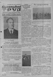 Пролетарии всех стран, соединяйтесь! 1Сои*Шгти&4тй Орган Кярасунекого райкома Коммунистической партии Советского Союза и районного Совета депутатов трудящихся Новосибирской области _ _ _ 70 (1944) | Всскресенье, 12 июня1955 г. Цена15 к Председатель Совета Министров СССР Н, А, Булганин, Товарищу БУЛГАНИНУ Николаю Александровичу Центральный Комитет Коммунистической партии Советского Союза и Совет Министров Союза ССР горячо приветствуют Вас, верного ученика Ленина и соратника Сталина, выдающегося деятеля Коммунистической партии и Советского государства в день Вашего шестидесятилетия. Коммунистическая партия и советский народ высоко ценят Ваши заслуги в борьбе за строительство Советского государства и социалистическую индустриализацию, в борьбе за победу над фашистскими захватчиками и за укрепление экономической и оборонной мощи нашей Родины. На всех постах партийной и государственной деятельности Вы с неутомимой энергией и высокой принципиальностью отдаете все свои силы великому делу строительства коммунизма. От всего сердца желаем Вам, наш друг и товарищ, наш дорогой Николай Александрович,доброго здоровья и многих лет дальнейшей плодотворной деятельности на благо народов Советского Союза, на благо коммунизма. Центральный Комитет Совет Министров Коммунистической партии Союза ССР Советского Союза У К А З Президиума Верховного Совета СССР Оприсвоении товарищу Булганину Н, А. званияГероя Социалистического Труда В связи с шестидесятилетием со дня рождения Председателя Совета Министров СССР товарища Булганина Н. А. и отмечая его выдающиеся заслуги перед Коммунистической партией и советским народом, присвоить товарищу Булганину Николаю Александровичу звание Героя Социалистического Труда с врученном ему ордена Ленина и золотой медали «Серин Молот». Председатель Президиума Верховного Совета СССР К. ВОРОШИЛОВ. Секретарь Президиума Верховного Совета СССР Н. ПЕГОВ. Москва, Кремль, 10 июня 1955 г. Посещение Премьер-Министром Инди Дж. Неру Вссеоюнзой сельскохозяйственной выставки 9 июня Премьер-Мпнпстр Республики Индии Джанахар- лал Неру, его дочь Индпра Ганди и другие сопровождающие его лица посетили Всесоюзную сельскохозяйственную выставку. Индийских гостей сопровождали первый заместитель Министра Иностранных Дел СССР В. В. Кузнецов, Чрезвычайный и Полномочный посол СССР в Республике Индии М. А. Меньшиков, заведующий протокольным отделом МИД СССР Ф. Ф. Молочков. Бурной овацией встретили Дж. Неру многочисленные посетители выставки. Гостей всюетпли председатель Главного комитета выставки, Министр совхозов СССР И. А. Бенедиктов и директор выставки академик Н. В. Цпцпн. Дж. Неру, Индира Ганди и сопровождающие их лида совершили поездку по территории выставки, осмотрели ее сады, поля, фонтаны, побывали в Главном павильоне, в павильонах Узбекистана, Туркмении, «Механизации и электрификации сельского хозяйст- j ва», «Водного хозяйства», в I животноводческом городке. Всюду, где появлялись гости, их встречали аплодисментами и приветственными возгласами. В книге отзывов выставки 'Джавахарлал Неру сделал следующую запись: «Это великолепная выставка, и единственно, о чем я сожалею, что не смог пробыть здесь дольше». На память о посещении выставки индийским гостям были вручены альбом ВСХВ, путеводители и фотографии с видами выставки. (Т