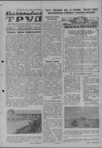 2. КОЛЛЕКТИВНЫЙ ТРУД 22 июня 1955 года, № 74 Семинар председателей колхозов и секретарей парторганизаций 16 июня 1955 года райком партии провел однодневный семинар секретарей колхозных парторганизаций совместно с председателями правлений. Цель проведения данного семинара заключалась в том, чтобы председатели колхозов и секретари парторганизаций уяснили некоторые теоретические вопросы о роли и функциях колхозной парторганизации и обменялись опытом работы. Лекцию «О роли и функциях колхозной парторганизации» прочитал секретарь РК КПСС по зонам Карасукской и Чер- нокурьинской МТС т. Курских. Участники семинара приняли активное участие в обсуждении поставленного вопроса. Например, в своем выступлении председатель колхоза «Пятилетка» т. Русинов сообщил, что в прошлом году партийная организация и правление колхоза неправильно строили свою работу, слабо была поставлена организационно-партийная и партийно-политическая работа. В результате в колхозе дела шли неважно, трудовая дисциплина была на низком уровне, имелись случаи невыхода на работу отдельных колхозников. Заседания правления проводились нерегулярно, на них присутствовали только члены правления без участия актива колхозников; колхозные собрания собирались редко. Сейчас парторганизация и правление перестроили свою работу, стали в контакте решать все хозяйственные вопросы, и дела пошли лучше. Заседания правления созываются расширенные, на них присутствует по 50— 60 человек. Колхозные собрания проходят организованно, при высокой активности всех колхозников. Большое внимание уделяется налаживанию соревнования, подведению итогов работы, поощрению передовиков. Председатели колхозов имени Амангельды т. Хапров, «Жол Сталина» т. Хисматулин самокритично признались, что в практической работе не замечают свои недостатки, а секретари партийных организаций тт. Сарсенов и Сарсем- баев не принципиально решают партийные вопросы, иногда идут на поводу у председателей колхозов. В результате в этих колхозах плохо идут хозяйственные дела, низка трудовая дисциплина. О слабом партийном контроле за выполнением решений январского Пленума ЦК КПСС со стороны секретарей парторганизаций колхозов говорил в своем выступлении председатель райплана т. Трахименок. Поделился своим опытом работы секретарь парторганизации колхоза имени Андреева т. Кагадей. Первый секретарь РК КПСС т. Чипиль подвел итоги обсуждения лекции и обмена опытом работы, остановплся на очередных задачах парторганизаций. После лекцип о международном положении на семинар были приглашены руководители районных организаций и учреждений. Председатели колхозов высказали свои претензии к ним. После этого была организована экскурсия в колхоз имени Тельмана. Участники семинара ознакомились со строительными работами, сооружением фашинного птичника, работой кирпичного завода, побывали в колхозном саду. А. Ключпнскпй. Праздник песни в Студеном В воскресенье 19 июня проходил праздник песни в зоне Студеновской МТС. С раннего утра в рощу около села Студеного сталп собираться участники самодеятельности сельского клуба и члены сельхозартели имени Буденного. Вскоре приехали сюда колхозники и механизаторы пз сел Троицкого п Богословского. Праздник песни начался выступлением сводного хора Сту- деновского, Богословского и Т