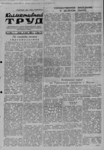 КОЛЛЕКТИВНЫМ ТРУД 6 июля 1955 года, № 80 За высокие показатели в труде на строительстве животноводческих помещений на районную ££ Доску почета заносятся: /д) 7. Колхоз «П ят и л ет к а» (председатель^ т.* Русинов, секретарь^парторганизации т. Карпенко), успешно ведущий строительство животноводческих и других производственных помещений. Для строительства заготовлено 100 тыс. штук самана и подвезено более 200 кубометров леса. 8. Ко л х о з «П ут ь Л е н и н а» (председатель тов. Кабицкий, секретарь парторганизации тов. Кушнарев), успешно выполняющий план строительства животноводческих помещений. Строительство ведется по типовым проектам. 9. Т р а кт о рн а я бригада т . Горбатенко из Октябрьской МТС, добившаяся высоких показателей на строительстве силосных сооружений в колхозе „Пятилетка1. 10. Бендер А .К ., Гидеон А .А . , К н а у с А .Е ., заготовщики глиняной массы в колхозе „Пятилетка». За 20 рабочих дней обеспечили заготовку и подвозку глиняной массы к месту формовки на 33 тыс. штук самана. 11. Шиц Леонид , мастер кладки глиновалковых стен в колхозе „Маяк Ильича1, выполняющий нормы выработки на 140—150 проц. с хорошим качеством. 12. М арковский М., бригадир строительной бригады колхоза «Новая семья». Бригада выполняет дневные нормы выработки на 110—130 проц. с хорошим качеством. 13. М иллер И . Г., бригадир строительной бригады колхоза им. Молотова. Бригада выполняет дневные нормы выработки на 120—130 проц. с хорошим качеством. 14. Кимель Давыд, старший группы по производству самана в колхозе им. Молотова. Группа за 20 рабочих дней выработала 40 тыс. штук самана. 15. Шаленый П. П ., Б ер е зан ский И . А ., плотники колхоза им. Тельмана, выполняющие дневные нормы выработки на 130—150 проц. с хорошим качеством. 16. Р асска зова Т. Д ., формовщица кирпича колхоза им. Тельмана, выполняющая дневные нормы выработки на 130 проц. с хорошим качеством. 17. Чередниченко И . С., каменщик колхоза «Вперед к коммунизму», перевыполняющий нормы на облицовке силосных траншей. ■■ «ХЗ Не^снижать темпы строительства! Врайисполкоме и райкоме КПСС Исполком райсовета и бюро РК КПСС подвели итоги месячника по строительству животноводческих помещений и силосных сооружений в колхозах. Лучших показателей в строительстве добился колхоз «Пятилетка», выполнивший план строительства на 47,2 проц. В колхозе изготовлено более 100 тыс. штук самана, завезено на стройплощадки более 200 кубометров деловой древесины. Колхозу вручено переходящее красное знамя РК КПСС и райисполкома, он награжден почетной грамотой. Второе место признано за колхозом «Путь Ленина», выполнившим план строительства на 34,5 проц. Колхоз награжден почетной грамотой. И передовых колхозных строителей награждены почетными грамотами райисполкома, 12 коллективов п строителей занесены на районную Доску почета. Исполком райсовета и бюро РК КПСС отметили хорошую шефскую помощь колхозам в строительстве животноводческих помещений п силосных сооружений коллективами молочно-консервного завода, автороты ипредприятия, которым руководит т. Баталов. Отмечена также неудовлетворительная организация работ по строительству в колхозах нм. Амангельды, им. Буденного, «Путь к коммунизму» и др. Исполком райсовета и бюро РК КПСС потребовали от руководителей колхозов, директоров МТС и совхозов, руководителей шефствующих организаций мобилизовать все силы и средства н