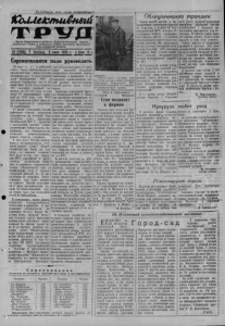 Прс/ета^ии fccx стран, соединяйтесь! 1Сои~Шс/пи£нмй Т Р У Д Орган Карасукскиго райкома Коммунистической партии Советского Союза п районного Совета депутатов трудящихся Новосибирской области 81 (1956) I Пятница, 8 июля 1955 г. I Цена 15 н Соревнованием надо руководить 29 мая с. г. в районной газете были опубликованы социалистические обязательства механизаторов н колхозников зоны Октябрьской МТС, в которых говорилось, что к 25 июня ими будет подготовлено 108 силосных траншей емкостью на 21.736 тонн, в том числе 19 облицованных траншей на 1976 тонн, что МТС для выполнения работ выделила 12 тракторов и закрепила 24 прицепщика. 27 июня состоялась сессия районного Совета депутатов трудящихся, на которой был заслушан отчет директора Октябрьской МТС т. Арсенова о выполнении взятых социалистических обязательств. Выяснилось, что обязательства оказались невыполненными, данное слово не сдержано. В чем дело? Почему колхозники и механизаторы не сдержали данное слово? Может, обязательства были не под силу, не хватало техники? Нет. Дело в том, что дирекция МТС, партийная и профсоюзная организации отнеслись к принятию социалистических обязательств как к формальному акту и организаторской работой по их выполнению не занялись. Ответственное дело было пущено на самотек. Многие колхозники и даже механизаторы уз- налп об обязательствах, когда нужно было уже подводить итоги их выполнения. К сожалению, такие факты формально - бюрократического отношения к принятию и выполнению обязательств не единичны. Колхоз имени Молотова перед началом весенних полевых работ выступил инициатором районного соревнования за сжатые сроки сева и за высокое качество полевых работ. Обязательства были конкретными: обуславливался объем работ, сроки проведения, качество. В ходе сева бюро РК КПСС заслушало секретаря парторганизации т. Гуляева и председателя правления т. Жукова о выполнении принятых обязательств. Оказалось, что многие пункты не выполняются, некоторые ' уже нельзя выполнить.II опять- таки причиной послужило формальное отношение парторганизации и правления к руководству соревнованием, низкий уровень массово-политической работы среди колхозников. Бригадир тракторной бригады Октябрьской МТС т. Ппни- гнн выступил инициатором областного соревнования за образцовое проведение летних полевых работ. Обязательства бригадой приняты серьезные, ответственные и выполнить их можно лишь при условии напряженного труда и слаженной работы всех членов бригады. Сев бригада провела неплохо, однако, как показывают факты, первый успех вскружил голову бригадиру. Тов. Пинигин зазнался, ослабил руководство бригадой, допускает случаи нарушения трудовой дисциплины. II как результат -бри гада уже не является передовой не только в районе, но и в МТС. Во многих колхозах и Щ С к руководству социалистическим соревнованием подходят однобоко, считают за главное сам факт принятия обязательств. Это неверно. С принятия обязательств соревнование лишь начинается. Чтобы выполнить их, требуется организаторская работа, создание необходимых условий, постоянный контроль за входом соревнования. Необходимо выявлять передовиков производства, распространять их опыт, вскрывать недостатки, подвергать их беспощадной критике и не допускать впредь. В сельском хозяйстве наступила горячая пора заготовки кормов, идет 