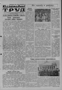 Пролетарии всех стран, соединяйтесь! 1CoUU&i&nu£Mi4 По городу и району ----------- ^ Т Р У Д Орган Карасукекого райкома Коммунистической партии Советского Союза и районного Совета депутатов трудящихся Новосибирской области 82 (1957) ЕВосшесеиы*. 11 июля 1855 г. I Цена 15 к. Полнее удовлетворять культурные запросы трудящихся С каждым годом повышаются культурные запросы трудящихся. Полнее удовлетворить эти запросы—почетный долг многочисленных очагов культуры—сельских клубов, библиотек, изб-читален. В начале этого года в районе были проведены отчеты перед населением работников культпросветучрежденпй за свою деятельность в 1954 году. Отчеты показали, что некоторые учреждения культуры проводят большуювоспитательную и культурно-просветительную работу на селе, держат тесную связь с тружениками полей, строят свою работу, опираясь на широкий актив любителей художественной самодеятельности. Широко, например, обсуждена работа Благодатского сельского клуба и библиотеки (заведующие тт.Герасименко и Рогожин). Жители села, отмечая некоторые положительные стороны в работе. вскрывали недостатки и упущения, подсказывали, как лучше и интересней строить работу клубов и библиотек. Наказы трудящихся, выполнение их критических замечаний и советов многие клубы и библиотеки положили в основу своей дальнейшей работы. В январе-марте были проведены фестивали молодежи по зонам МТС, а затем районный и областной смотры художественной самодеятельности. В них приняло участие более 1.200 человек. По массовости и качеству исполнения номеров первое место занял коллектив самодеятельности Хо- рошинского сельского клуба. Фестиваль молодежи завершился проведением праздника песни в зонах МТС, а затем в городе. В период весеннего сева главное внимание было обращено на культурное обслуживание работающих в поле колхозников п механизаторов. С этой целью было скомплектовано и отправлено в полевые станы п тракторные вагончпкп 98 передвижных библиотек. В; Троицком и Хорошинском клубах работали агитбригады. 21 концерт дали для тружеников полей члены агитбрпгады районного Дома культуры. В ее составе ездил лектор, библиотечный работник, книгоноша. Всего на полях дано более 100 концертов. За полгода для трудящихся лекторами обществе н никами ирочитанно более 200 лекций и докладов. Эта работа хорошо поставлена в Кучугурском клубе, где прочитана 21 лекция, в Хорошинском—36. В селе Благодатном сельские лекторы тт. Лобанов п Пикин прочитали по 7 лекций. Однако в работе культпро- светучреждений еще имеется много недостатков. Плохо работают клубы в селе Октябрьском, в колхозе имени Джамбула, в Шилово-Курье. Руководители колхоза «Маяк Ильича.» давно начали разговоры о постройке колхозного Дома культуры, но практически ничего не делают, а между тем в помещение старого клуба вселили семьи новоселов. Плохо готовятся клубы к работе в зимних условиях в селе Октябрьском и Богословке. При районном Доме культуры организованы курсы баянистов. Однако на них послали своих людей только 5 колхозов и Студеновская МТС. Сейчас на полях колхозов и совхозов началась кампания по заготовке кормов, приближается уборка урожая. Задача культпросветработников— поднять роль очагов культуры, повысить уровень культурно- просветительной работы, при-1 близить ее непосредственно к производственным участкам. Помочь 