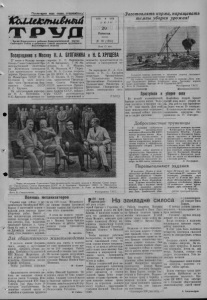 29 июля 1955 года, № 90 КОЛЛЕКТИВНЫЙ ТРУД Письмавредакцию Кинофильм и концер т в поле Колхозники первой полеводческой бригады сельхозартели «Путь к коммунизму» совместно с механизаторами тракторной бригады т. Бухмиллера выехали на заготовку грубых кормов за 50 километров от центральной усадьбы колхоза. Сейчас они успешно ведут сенокос. Правление сельхозартели и сельский Совет проявляют о них постоянную заботу. Сюда регулярно доставляются газеты, агитаторы проводят беседы, имеется библиотечка-передвижка. Недавно для членов бригады был показан цветной кинофильм «Укротительница тигров». Два раза приезжала передвижная парикмахерская. Молодежь, работающая на лугах, своими силами подготовила и выступила с концертом художественной самодеятельности. В концерте принимал участие машинист сенокосилки т. Корчун, повариха т. Шевченко, работница школы т. Лы- марь и другие. Т. Архипов. Лучшая бригада Ежедневно возрастает приток зерна на пункт «Заготзер- но». Отсюда оно отправляется в разные концы нашей страны. На погрузке и разгрузке занято несколько бригад. Лучшей из них является бригада Галины Горбачевой. Мария Гуляева, Елена Больт и другие члены бригады т. Горбачевой, обслуживая сложную технику—транспортеры, самоподаватели и другие машины, хорошо следят за их работой, не допускают простоев. Их ежедневная выработка составляет 120—130 процентов. М. Кузьмин. Шефы на уборке сена 24 июля группа работников Карасукского строительно-монтажного управления выехала в сельхозартель имени М.Горького для оказания помощи колхозникам в уборке сена. Правление отвело им отдельный участок. Шефы хорошо потрудились Тв этот день,’ в два раза перекрыли доведенное пм задание. Лучше других работали И. Вильюм, Т. Орех, И. Соловьева. В обеденный перерыв агитатор коммунист т. Пашков ознакомил рабочих с докладом Председателя Совета Министров СССР т. Булганина на июльском Пленуме ЦК КПСС. И. Мордовец, секретарь парторганизации СМУ. Не демонстрируют кинофильмы В период весеннего сева часто бывал с кинопередвижкой в бригадах колхоза имении Джамбула механик т. Хау- ^Щов.Хлеборобы были этим очень довольны. Но после окончания весеннего сева не стала ездить к нам кинопередвижка. В поселках Карасу-Казахп и Павловке, например, в течение двух последних месяцев ни разу не демонстрировались ки нофильмы. Просим отдел культуры улучшить кинообслуживание членов нашего колхоза. Б, Узканов. Сдерживают уборку рыжика На больших площадях созрел рыжик во второй полеводческой бригаде колхоза имени Максима Горького. На некоторых участках он уже осыпается. Однако полеводческого бригадира т. Вовк это не тревожит. Вопреки указаниям агронома т. Купиной он дал распоряжение вывести с полосы комбайны, работавшие на уборке, ссылаясь на то, что .,рыжик еще не созрел. На самом деле причина в том, что бригада плохо подготовилась к уборке нового урожая. На току скопилось более 70 центнеров рыжика, но он не подрабатывается. Не организована своевременная подвозка горючего к комбайнам. Механизаторы вынуждены ездить на обед в село, так как в бригаде для них не готовится пища. Самого бригадира часто можно видеть в нетрезвом виде. П. Илюшин. По следам наших выступлений ,,Как-нибудь протянем.. Под таким заголовком в 80 номере нашей газеты за 6 июля было опубликовано письмо В. Петрова, в котором сообщалось о 