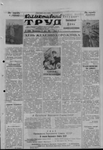 По городу и району В колхозе „Пятилетка" нынче организовано электродоение коров. Доярка Анна Илларионовна Шаповалова хорошо освоила электродойку. В этом году она от каждой из закрепленных за нею коров надоила по 1.550 литров молока. На снимке: Анна Илларионовна Шаповалова отправляется на дойку. Фото А. Черкасского. « т 1 ТЕОРЕТИЧЕСКАЯ К О Н Ф Е Р Е Н Ц И Я 29 июля прл партбнблио- теке состоялась теоретическая конференция на тему; «Себестоимость промышленной продукции и пути ее снижения. Организация хозрасчета. Цена и прибыль в социалистическом производстве». На конференция присутствовало более 30 руководящих партийных и хозяйственных работников предприятий и учреждений города. Ранее они прослушали на эту тему лекцию первого секретаря РК КПСС т. Чипиля. С содокладами выступили главный инженер молочно-консервного завода т. Базаркин, главный бухгалтер райпромкомбпна- та т. Ковбасюк, главный бухгалтер мясокомбината т. Глебов. НОВАЯ ТЕХНИКА Нз года в год оснащается новой техникой колхозное производство. В артелях устанавливаются автопоилки, кормозапарники, организуется электродойка. На днях Карасукское отделение «Сельхозснаба» получило 10 новых кормо- дробплок «ДКО—1». Производительность каждой из них—1200 килограммов в час. Н А С Е Н О К О С ! Колхозы«Красное знамя», «Пятилетка», им. Тельмана, и «Маяк Ильича» ведут заготовку кормов в Чулымском районе. На этой работе занято более ста колхозников и механизаторов. С целью культурного обслуживания колхозников, занятых на сенокосе, агитбригада районного Дома культуры на днях выезжает с концертами в Чулымский район. В. Устинов. Пролетарии всех стран, соединяйтесь! кЪмШгтиВнтй Т Р У Д Орган Карасукского райкома Коммунистической партии Советского Союза и районного Совета депутатов труднщпхся ______________Новосибирской области____________ _______ 91 (1966) [Воскресенье, 31 июля 1955 г. I Цена 15 и. С е г о д « я— Всесоюзный День железнодорожника Д Е Н Ь ЖЕЛЕЗНОДОРОЖНИКА Сегодня наша страна отмечает Всесоюзный День железнодорожника. Этот день является не только всенародным праздником, но и боевым смотром мощи советского железнодорожного транспорта, его готовности к решению новых задач в развитии народного хозяйства страны. Благодаря заботам партии и правительства с каждым днем в нашей стране увеличивается протяженность стальных магистралей, растут новые станции, железнодорожный транспорт оснащается первоклассной техникой. Это видно хотя бы из того, что недавно наша станция переведена с третьего во второй класс, идет ее реконструкция. Будут построены контейнерная площадка и склады, строится новая линия Карасук—Камень. Большая забота проявляется о работниках транспорта. Об этом свидетельствует постоянный рост их материального, культурно- технического уровня и жилищных условий. В ответ на эту заботу труженики транспорта отдают все силы на благо любимой Родины, на выполнение задач, поставленных перед ними партией и правительством. Патриотический подъем проявляется во всенародном социалистическом соревновании, охватившем массы советских железнодорожников. Достойными производственными показателями встречает День железнодорожника коллектив станции Ка- раеук. План июля по выгрузке выполнен на 120 процентов, успешно справился коллектив с погрузкой. Первенство в соревновании в честь родного праздника за