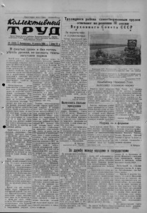 14 августа 1955 года, № 97 КОЛЛЕКТИВНЫЙ ТРУД Письма в редакции К занятиям готовы Хорошо потрудился технический персонал Студеновской средней школы воглаве с завхозом А. Фпнадеевым на подготовке помещении школы к новому учебному году. В течение летних каникул здесь привели в порядок все печи, три из них сложили заново, отремонтировали парты, побелили здание, на первую половину учебного года завезено топливо. Сейчас в школе проводится запись учащихся. К. Провт. Работать можно лучше Хорошо трудятся на уборке урожая в колхозе «Вперед к коммунизму» механизаторы тракторной бригады № 12 из Карасукской МТС. На косовице хлебов здесь работают два комбайна «Сталинец - 6» и самоходный «С - 4». Они ежедневно скашивают в полтора- два раза больше задания. Например, молодой водитель комбайна «Сталинец - 6» Поя Боровых ежедневно убирает по 16—18 гектаров пшеницы. Производственные показатели могли оыть гораздо выше. Но их рост сдерживает халатное отношение бригадира полеводческой бригады т. Азаровак быту механизаторов. Так. в течение последних четырех дней в тракторную бригаду не привозили хлеба. Врезультате механизаторы вынуждены после работы уходить домой за 3—4 километра. Это приводит к опозданию наработу, сокращению рабочего дня. 4. Рахманько, зав. библиотекой Карасукской МТС. Р О Д Н О Й С Т Р А Н Е Колхозы и совхозыКировоградской области досрочно выполнили государственный план хлебозаготовок Колхозники, работники МТС:ство сдать государству сверх TI г . л 1 1 9 ч п Т Т П П Л П Я nvnnn и совхозов Кировоградской об ласти, досрочно выполнили государственный план хлебозаготовок (без кукурузы). Государству сдано зерна 32,1 мил иона пудов, в том числе пшеницы30,3 мил иона пудов. Труженики сельского хозяйства области взяли обязательплана 11,3 миллиона пудов зерна. Всего будет сдано хлеба государству пз урожая 1955 года не менее 46,5 миллиона пудов, илина 3,1 миллиона пудов больше, чем было сдано хлеба государству в самом урожайном 1952 году. Первые полмиллиона гектаров земли Машинно-тракторные станции Казахстана приступили к подъему зяби. Уже вспаханы первые нол.члилиона гектаров—в четыре раза больше, чем к этому временивпрошлом году. Колхозы республики подготавливают иод урожай будущего года 10.900 тысяч гектаРасхищают рыбные богатства Большими рыбнымибогатствами располагают озера нашего района. Чтбоы эти богатства не истощались, необходимо правильно их использовать, соблюдать установленные правила н сроки лова рыбы. Однако у нас некоторые организации и отдельные рыбаки не соблюдают эти правила, укрываются от регистрации орудий лова. К числу нарушителей правил рыбной! ловли относятся Карасукский райпще- комбпнат (директор т. Пушкарев), а также индивидуальные рыбаки В. Беседин, И. Кузичь, Е. Савищенко, А. Трекпн. Сельские Советы и общественные инспекторы должны пресекать рыбаков-браконьеров. зорче охранять рыбныебогатства наших водоемов. II. IllНЛО. План не выполнили иуспокоились.,. В колхозе имени Жданова (председатель т. Лебедев) план по рытью траншей выполнен только на 41 процент, а по облицовке их лишь на 6 процентов. Но несмотря на это сейчас в сельхозартели прекращены все работы но подготовке новых траншей. (Из письма в редакцию). Одесская область. Организованно сдают зерно государству колхозники сельхозартели имени Кагановича Ренийского района. Здесь хлеб ни одног