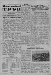 V 28 августа 1955 года, № 103 В ЧЕСТЬ XX СЪЕЗДЯ КПСС КОЛЛЕКТИВНЫЙ труд ............................ ..... Накануне учебного года В колхозе^имени Тельмана нынче механизировали приготовление массы для производства кирпича. Это значительно подняло производительность труда, увеличило выпуск продукции. Завод выдал для колхозных строек около 150 тысяч штук кирпича. На снимке: на кирпичном заводе. Фото А. Черкасского. ------------------------- А А------------------------- - Выполнили годовой план Включаясь в социалистическое соревнование в честь XX съезда КПСС, рабочие пилорамы райпромкомбината взяли обязательство выполнить годо- щр вой план распиловки леса к 7 ноября. Для более полного использования техники и повышения производительности труда была введена двухсменная работа, сокращено время на техническое обслуживание машины. В первые же дни работы по-новому производительность труда резко возросла. Коллектив пилорамы, возглавляемый коммунистом т. Плотниковым, стал распиливать до 20 кубометров в день при задании 10 кубометров. Напряженно трудятся рабочие тт. Харченко и Лукьяненко, машинист комсомолец т. Швайгерт и другие. На днях пилорама выполнила свой годовой план и продолжает вести распиловку леса в счет 1956 года. С. Ковиасюк, секретарь парторганизации. На высоких скоростях Обсуждая поста новление июльского Пленума ЦК КПСС, коллектив гаража молочно-консервного комбината вскрыл ряд неиспользованных резервов. Было решено привести эти резервы в действие и вклю- чпться в социалистическое со- ф ревнов ание за достойную встречу XX съезда КПСС. С каждым днем растут темпы в работе. Шофера тт. Зозуля, Молчанов, Касьян водят машины на высоких скоростях, сокращают время под погрузкой и разгрузкой. Годовой план грузоперевозок они выполнили на 93 процента. Шофера тт. Зозуля, Молчанов и Касьян решили закончить выполнение годового плана грузоперевозок к 15 сентября. Их призыв горячо поддержан всеми водптолямп га ража. Задание последней декады работники автотранспорта выполнили на 200 процентов. К. Василевский. Последние приготовления Оживленно сейчас в Мо- розовской семилетней школе. После долгого летнего перерыва снова приходят сюда ребята: кто записаться, а кто уже записался,—просто так: тянет к себе школа детвору перед началом учебного года. Во время летних каникул ребята отдохнули, многие из них хорошо потрудились в родном колхозе—работали на сенокосе, уборке и подработке хлеба, в животноводстве. Школу же в это время готовили к новой встрече своих воспитанников: ее побелили, отремонтировали печи, застеклили окна, завезли топливо. Пополнилось учебное хозяйство школы: приобретено на 1600 рублей наглядных пособий, куплено 20 новых парт. Созданы условия для нормальной плодотворной работы учителей. Все они имеют квартиры, заготовлено топливо. В школе просторная, светлая учительская комната. В ней имеется хороший методический уголок, который постоянно пополняется новой методической литературой. Сейчас учителя на августовском совещании обмениваются опытом, вскрывают ошибки прошлого года, намечают пути более успешного обучения и воспитания учеников. Идут последние приготовления. Уточняются списки учащихся, распределяются учебники и школьные принадлежности. 1 сентября Морозовская семилетняя школа приветливо распахнет свои двери перед загорелыми, повзрослевшими, хорошо отдохнувшими