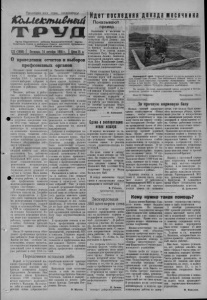 Пролетарии всех стран, соединяйтесь! KbUUeJcmu&Heui Орган Карасукского райкома Коммунистической партии Советского Союза и районного Совета депутатов трудящихся Новосибирской области 123 (1998) | Пятница, 14 октября 1955 г. | Цена 15 н. О проведении отчетов и выборов профсоюзных органов Истекают сроки полномочий руководящих профсоюзных органов. С 1 октября по 15 декабря 1955 г. проводятся отчетно-выборные собрания в первичных профсоюзных организациях и районные конференции. Местные, рабочие и районные комитеты профсоюзов должны провестп отчеты и выборы руководящих органов на высоком политическом и организационном уровне, под знаком мобилизации широких масс трудящихся на выполнение решений январского и июльского Пленумов ЦК КПСС, на досрочное завершение плана 1955 года каждым предприятием в установленной номенклатуре п ассортименте, на повышение производительности труда, снижение себестоимости продукции, на дальнейшее улучшение культурно- бытового обслуживания рабочих н служащих. В работе профсоюзных организаций имеется еще много недостатков. Так, рабочкомы Карасукской, Хорошинской и Октябрьской МТС плохо руководят социалистическим соревнованием механизаторов. Онизанимаются этим делом формально, итоги подводят от случая к случаю. Мало вннма- лшя уделяют быту и культурному отдыху рабочпх и служащих профсоюзные комитеты мелочно консервного завода и пункта «Заготзерно». В течение отчетного периода рабочком совхоза им.Дзержинского (председатель тл Дуда- рек) слабо занимался вопросами развертывания социалистического соревнования, охраной труда и здоровьярабочих. Так, в РТМ не соблюдаются правила техники безопасности. Из- за ветхости помещенпя кузнецы давно уже запрещено в ней работать, однако там работают и сейчас. Рабочком проходит равнодушно мимо подобных фактов. Около 30 членов союза объединяет профсоюзная организация районного Дома культуры. Многие из них, особенно киномеханики, хорошо трудятся, систематически перевыполняют доведенный план п некоторые уже работают в счет 1956 года. Имеются однако н нерадивые, отстающие работники. Можно было бы через социалистическое соревнование и обмен опытом подтянуть до уровня передовых всех членов профсоюза. Но профсоюзная организация этим вопросом не занимается. Здесь за отчетный период проведено всего одно собрание. Члены профсоюзов должны вскрыть все недостатки в работе руководящих органов, острой критике подвергнуть тех руководителей, которые формагьио относились к организации социалистического соревнования, не занимались вопросами быта и отдыха рабочих, повышения пх деловой квалификации. Собрания и конференции необходимо тщательно готовить. Особое внимание нужно обратить на подготовку доклада. Отчетные доклады должны быть политически острыми, насыщены конкретными примерами изжизниместной профсоюзной организации. К подготовке их нужно привлекать широкий профсоюзный актив. Наряду с профсоюзными комитетами должны отчитываться о своей деятельности ревизионные комиссии. Начавшиеся в районе отчеты и выборы уже вскрыли серьезные недостатки в подготовке п проведении отчетных собраний. Так, в профсоюзной организации Карасукской средней школы из-за плохой явки на собрание пришлось дважды намечать сроки его. Причем и во второй раз присутствовали не все члены профсоюза. В отч