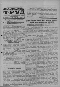 28 октября 1955 года, № 129 КОЛЛЕКТИВНЫЙ ТРУД 3. Работники сельского хозяйства! Добивайтесь резкого повышения продуктивности и увеличения поголовья скота! Обеспечим хорошую зимовку скота! Дадим стране больше продуктов животноводства! (Из Призывов ЦК КПСС к 38-й годовщине Великой Октябрьской социалистической революции) Быстрее перевезти корма к фермам В постановлении январского Пленума ЦК КПСС указывается, что быстрейший подъем животноводства — неотложная задача партии и государства в сельском хозяйстве. Необходимо создать в стране обилие мяса, масла, яиц и других продуктов для населения и сырья для легкой и пищевой промышленности. Наш район имеет благоприятные условия для увеличения стада и его продуктивности. Однако они полностью не используются. Сейчас в колхозах завершаются работы по обеспечению сытой и теплой зимовки скоту. Большую роль в успешном проведении зимовки скота будет играть обилие кормов у ферм. Для их сохранения и правильного использования важно быстрее доставить корма на фуражные склады. Именно так поняли свою задачу механизаторы Октябрьской МТС и колхозы зоны обслуживания этой станции. Здесь на партийных собраниях коммунисты разработали мероприятия по усиленной подвозке кормов к фермам, дали ряд ценных советов, сами принимают горячее участие в доставке фуража. Образцы в труде показывают члены тракторных бригад коммунистов тт. Крамского и Семенихина. Трактористы тт. Павлов, Мамаев, Сидоричев, Литао ежедневно доставляют к местам зимовки скота по 150—160 центнеров сена. Не отстают от механизаторов и колхозники. На подвозке кормов они используют все средства: автомашины и брички. За пятидневку прирост на подвозке кормов по зоне Октябрьской МТС составил 12 процентов. К фермам доставлено почти 10.000 центнеров сена. По-иному обстоит дело в колхозах зоны Студенов- ской, Чернокурьинской и Хорошинской МТС. Здесь по сути дела свернули подвозку кормов к фермам. Особенно плохо доставляют корма в колхозах „Путь к коммунизму”, „Красный пу- тиловец” и им. Калинина. В это время, дирекция Хорошинской МТС решила снять все тракторы с подвозки кормов, объясняя это тем, что зима длинная и их еще можно успеть подвезти. За пятидневку, с 20 по 25 октября, ни один из четырех колхозов зоны Чернокурьинской МТС не занимался подвозкой кормов к фермам. Нетерпимо медлят с доставкой . кормов к животноводческим фермам руководители колхоза имени Буденного. Здесь неплохо поработали на заготовке кормов, а доставку их к фермам затягивают. Одной из причин этого является слабая трудовая дисциплина, в колхозе не развернуто социалистическое соревнование. Есть все возмо'жности, чтобы вдоволь доставить кормов к фермам. Надо полнее использовать резервы колхозов и МТС, переключить на эту работу тракторы, живое тягло, автомашины. Партийные организации, правления артелей, руководители МТС должны широко развернуть среди работников, занятых на доставке кормов к фермам, социалистическое соревнование, позаботиться об их быте. Товарищи механизаторы и колхозники! Шире развернем соревнование за быстрейшую доставку кормов к местам зимовки скота, подготовим достойный подарок 38-й годовщине Октября и XX съезду КПСС! Создание сытой и теплой зимовки общественному скоту долг работников МТС С О Р Е В Н О В Д Н И Е колхозов, МТС и совхозов на заготовке и подвозке кор