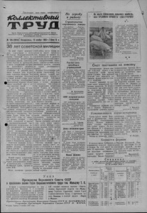 Пролетарии всех стран, соединяйтесь! j4b*lae&nu£H$ui. Т Р У Д Орган Карасукского. райкомаКоммунистической партии Советского Союза и районного Совета депутатов трудящихся Новосибирской области №135(2010)1 Воскресенье, 13 иолбря 1955 г.IЦена 15 к 38 лет советской милиции По всей стране развернулось соревнование в честь XX съезда Коммунистической партии. Советский народ, воодушевленный историческими решениями партии, самоотверженно борется за претворение в жизнь грандиозной программы дальнейшего развития промышленности и сельского хозяйства. В решении этих задач большую роль играет наша советская милиция. Она охраняет народные богатства и самый ценный в мире капитал-человека, поддерживает ^общественный порядок, обеспечивает спокойный труд и отдых советских людей. 38 лет тому назад, 12 ноября 1917 г., телеграфлередал постановление Советского правительства об учреждении рабоче-крестьянской милиции— принципиально новой организации, как по своему историческому назначению, так и по своей социальной сущности. Она является подлинно народной милицией. Необходимость "создания всенародной милиции предопределил основатель Советского государства Владимир Ильич Левин. Еще в марте 1917 года он писал, что взамен полиции «...как особой, отделенной от народа j противопоставленной ему, Ррганпзации вооруженных людей, находящихся под командой буржуазии», необходимо создать всенародную милицию, которая являлась бы организацией, созданной рабочим классом, п выражала бы «разум п волю, силу и власть огромного большинства народа». Советскую милицию создавали из пролетарских боевых дружин уездные, губернские Советы рабочих п крестьянских депутатов в процессе ломки старого буржуазного аппарата, взамен полиции. Первый период существования милиции, ее работа по охране революционного порядка переплеталась с действиями Красной Армии, органов и .войск ВЧК, После окончания гражданской войны, когда страна перешла на мирное строительство, милиция из органов вооруженной борьбы и военного подавления внутренней ивнешней контрреволюции становится административно-исполнительным органом, стоящим на охране революционного порядка. Великая Отечественная война против гитлеровской Германии явилась суровой проверкой моральных качеств советских людей. Работники милиции, как и все советские люди, с честью выдержали это испытание. Они показали себя пламенными патриотами нашей Родины. За успешное выполнение заданий правительства в условиях войны, за доблесть и мужество, проявленные личным составом, милиции городов Москвы и Ленинграда награждены орденами Красного знамени. Сила советской милиции заключается в том, что она, как и вся система управления государством, находится под постоянным руководством и контролем Коммунистической партии, опирается на массы трудящихся, пользуется их помощью и поддержкой. Партия неустанно заботится о том, чтобы лучше приспособить органы милиции к возросшим задачам строительства коммунизма, сделать ее учреждения ещё более близкими и доступными для трудящихся масс, чтобы у нас в стране везде и всюду соблюдали ленинские принципы работы государственного аппарата. Работник милиции—друг и защитник народа—умеет постоять и в большом и в малом за интересы социалистического государства, интересы трудящихся. Советские люди уважают за это
