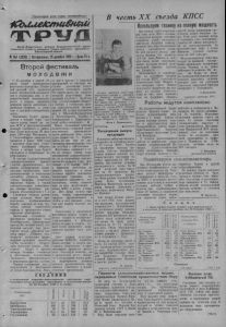 X КО Л Л Е К ТИ В НЫ Й Т Р У Д 25 декабря 1955 года, № 154 Повышать активность каждого коммуниста Коммунистическая партия сильна единством действий, сплочённостью и активностью своих членов. Коммунисты, находясь постоянно в массах, мобилизуют и организуют пх на успешное проведение в жизнь директив партии и правительства. Огромное значение в деле воспитания и повышения активности членов и кандидатов в члены КПСС имеют партийные поручения, выполнение которых приучает коммунистов к организаторской работе в массах, поднимает у них дисциплину п ответственность за порученное дело. В партийной организации Чер- нокурьинской МТСвсекоммунп сты активно участвуют в жизни партийной организации станции Секретарь партбюро т. Соболев дает поручения коммунистам с учётом их уровня развития, опыта и организаторских способностей. Давая партийные поручения, он инструктирует "Коммунистов, а затем систематически проверяет и, если требуется, оказывает практическую иомощь в выполнении их. Благодаря этому у коммунистов создамся уверенность в своих силах и способностях, развивается инициатива. Однако далеко но во всех парторганизациях обстоит дело так. Партийная организация колхоза им. Куйбышева объединяет в своих рядах 14 коммунистов, которые работают на различных участках колхозного производства. Однако секретарь т. Сидоренко мало что делает по повышению активности рядовых членов партии. Коммунисты П. Подлужный, А. Шапоренко, Н. Подлужный п Н. Мистюк в течение года не имели никаких поручений, не привлекались к подготовке вопросов на партийные собрания, хуже того, они не принимают участия в обсуждении поставленных вопросов. Постоянными оратора- мп на собраниях, как правило, являются председатель колхоза п его заместитель, директор семилетчей школы и сам секретарь парторганпзацпп. Такое же положение и в партийных организациях колхозов им. Амангельды, «Маяк Ильича», им. Жданова. Секретарь парторганпзацпп сельхозартели «Новая семья» т. Дави- денко боится давать ответственные поручения рядовым коммунистам, чем сковывает их активность. Высокие партийные качества не появляются сами собой. Они вырабатываются разносторонней и многогранной воспитательной работой, повседневным участием коммунистов в практической деятельности первичной парторганизации. Сейчас перед сельскими парторганизациями стоит боевая задача— образцово провести зимовку общественного животноводства. Огромную роль в решении ее призваны сыграть коммунисты в тесной и постоянной связи с массами. з. Тур, инструктор РК КПСС. Зимовке скота—неослабное внимание (С V сессии районного Совета депутатов трудящихся) Kpeiпить дисциплину в физкультурных коллективах В воскресенье 18 декабря в городе проходило открытие зимнего спортивного сезона. В этот день намечалось провести массовый лыжный кросс. Об этом были извещены спортивные коллективы, заранее под готовили лыжню, подобрали судей. В час дня к месту соревнований начали подходить лыжники. Первыми стартовали де вочки. JIx дистанция— два километра. Лучший результат показала ученица семплетней школы № 1 Ира Горбачева. Она прошла два километра за И минут 3 секунды. На второе место вышла ученица этой же школы Валя Теренюк. Третье место заняла ученица семилетней школы № 2 Люда Кобзарева. Мальчики состязались на трехкилометровой дистанции. П
