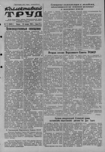 Пролетарии всех стран, соединяйтесь! iCbuae&nuSHGM Т Р У Д Орган Карасуксвого райкома Коммунистической партии Советского Сок>8& и районного Совета депутатов трудящихся Новосибирской области №1 (2042) Среда, 25 января 1956г. Цена15к. Производственные совещания Директивы по шестому пятилетнему плану ставят перед советским народом новые задачи по дальнейшему подъему промышленности, улучшению организации производства, развитию сельского хозяйства. Выполнить успешно эти задачи невозможно без широкого использования творческой инициативы трудящихся масс, глу боко заинтересованных в развитии общественного производства. Наиболее доступной и действенной формой проявления инициативы широких рабочих масс, инженерно-технических работников и служащих являются производственные совещания. Содержание работы производственных совещаний определяется конкретными задачами, стоящими перед коллективами предприятий промышленности, сельского хозяйства, транспорта, торговых организаций, советских учреждений. Непосредственное руководство производственными совещаниями осуществляют профсоюзные комитеты или срофгрунпорги. Однако и хозяйственные руководители не должны стоять в стороне. Они обязаны принимать непосредственное участие в подготовке и проведении производственных совещаний, учитывать и впоследствии реализовывать поступившие предложения. Прочно вошли в жизнь производственные совещания в коллективе «Заготзерно» (директор т. Лысенко, председатель рабочего комитета т. Заторуиько). Здесь продуманно подбирают вопросыдля обсуждения на производственных совещаниях, тщательно готовят их, и они являются хорошей школой воспитания в массах коммунистического отношения к труду и социалистической собственности. Рабочие Б. Гуйда и А. Алексеева плохо работали, а иногда и совсем не выходили на работу, С ними беседовали, их наказывали административно, но они продолжали нарушать трудовую дисциплину. Тогда вопрособ укреплении трудовой дисциплины был вынесен на производственное совещание, на котором рабочие сами усовестили своих товарищей, нерадиво относящихся к общественному производству. Теперь тт. Гуйда и Алексеева работают добросовестно. Профсоюзная организация большое внимание уделяет рациональному использованию механизмов, повышению производительности труда. Это в свою очередь позволило коллективу «Заготзерно» добиться первенства в областном социалистическом соревновании. За реализацией принятых решений в установленные сро ки следят профсоюзные активисты и на каждом очередном совещании сообщают о выполнении предложений рабочих. За последнее время стала налаживаться работа производственных совещаний в райпотребсоюзе, СМУ, пищ**комбй- нате. Однако еще во многих предприятиях, МТС, совхозах и организациях района произ водственные совещания проводятся от случая к случаюпли подменяются разного рода «оперативками» и «планерками», где рядовые работники не имеютвозможности выступать, критиковать, вносить предложения. Не в моде, например, производственные совещания в лесхозе, мясокомбинате. Здесь иногда проводятся совещания, но всегда с бессменным вопросом «Итоги работы за прошедшее время и задачи на следующий период». Они проходят без должной подготовки, наспех, без учёта предложений рядовых работников и не имеют должного эф