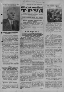4 февраля исполнилось 75 лет \К. Е. ВОРОШИЛОВУ Товарищу Клименту Ефремовичу ВОРОШИЛОВУ Центральный Комитет Коммунист ческой партии Советского Союза и Совет Министров Союза ССР горячо приветствуют Вас, верного ученика великого Ленина, одного из выдающихся деятелей Коммунистической партии и Советского государства, —в день Ваше- Л Ь семидесятипятилетия. С ранних лет вступив на революционный путь, Вы всю свою сознательную жизнь посвятили борьбе за дело рабочего класса против гнета помещиков и капиталистов. Коммунистическая партия и совет- v. ский народ высоко ценят Ваши заслуги в борьбе за победу Великой Октябрьской социалистической революции, за укрепление обороноспособности страны и в строительстве Советского государства. На всех постам партийной, государственной и военной деятельности Вы с присущей Вам энергией отдавали и отдаете все свои силы, знания и большой жизненный опыт великому делу строительства коммунистического общества. От всего сердца желаем Вам, наш друг и товарищ, наш дорогой Климент Ефремович, многих лет здоровья и плодотворного труда на благо народов нашей страны, во имя торжества идей коммунизма. Ц ент ральны й К омит ет Совет Комм унист ической парт ии Министров Советского С ою за Сою за CCJP У к а з ПРЕЗИДИУМА ВЕРХОВНОГО СОВЕТА СССР о присвоении товарищу Ворошилову К.Е. звания Героя Советского Союза Отмечая выдающиеся заслуги Председателя Президиума Верховного Совета СССР товарища Ворошилова К. Е. в защите Советского государства, присвоить товарищу Ворошилову Клименту Ефремовичу звание Героя Советского Союза с вручением ему ордена Ленина и медали „Золотая Звезда1. З ам е ст ит е л ь П р ед с ед ат еля П р е зи д и ум а В ерховно го Совета СССР М. ТАРАСОВ. С екр ет ар ь П р е зи д и ум а В ерховно го Совет а СССР Н. ПЕГОВ. Москва, Кремль. 3 февраля 1956 г. К сведению депутатов райсовета 7 февраля 1956 года созывается шестая сессия районного Совета депутатов трудящихся (пятого созыва). Сессия начнёт свою работу в 1 час дня в помещении районного Дома j культуры. Пролетарии всех стран, соединяйтесь! 10кие1сгпив4ш й •, OpiaH Кар.тсукского райкома Коммунистической пар т о Советского Союза и районного Совета депутатов трудящихся Новосибирской области Hi 16 (2047) Воскресенье, 5 февраля 1956 г. Цена 15 к. Молодые колхозники и механизаторы! Юноши и девушки! Сегобня—первый день областного комсомоль- \ско- молодежного декадника по вывозке на I поля удобрений и снегозадержанию, посj вященного XX съезду КПСС. Дружно включайтесь в работу! Сделаем боль- | ше снегозадерживающих препятствий, вывезем на \поля больше местных удобрений—богаче будет : урожай! О Б Р А Щ Е Н И Е колхозников и колхозниц, работников МТС и совхозов, специалистов сельского хозяйства Воронежской области ко всем работникам сельского хозяйства Союза ССР На собраниях колхозников, работников МТС и совхозов, специалистов сельского хозяйства Воронежской области было обсуждено и принято обращение ко всем работникам сельского хозяйства Советского Союза. ^Подводя итоги успешного развития сельского хозяйства области в 1955 году, (Зтруже- ники сельского хозяйства Воронежской области говорят об огромных резервах и возможностях, которыми располагают колхозы и совхозы для того, чтобы в более короткий срок, чем это определено решениями январского Пленума ЦК КПСС, значительно увеличить „п