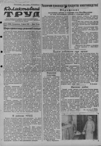 <Г' / у о ГCt (С( И « (Уи ( - » Пролетарии всех стран, соединяйтесь! 1CbUa£Jcrnu£um i 0[Г»в Кярагукского райкома Коммунистической партии Советского Союва и ряпониою (он п и депутатов трудншвхся Новосибирской области №28 (2С59) IВоскресенье, Шире пропаганду решений съезда Решения XX съезда партии имеют огромное историческое значение. Они дали ясную персиективу дальнейшего роста нашей промышленности, развития сельского хозяйства, повышения материального благосостояния и культурного уровня народа. Эти решения являются программой дальнейшей борьбы за постр lemie коммунистического общества в нашей стране, за упрочение мира во всем мире, за торже С1во великих идей марксизма- ленинизма. Трудящиеся нашего района, как и в сь советский народ, с большим вниманием п интересом следило за работой съезда. Сейчас повсеместно проводятся митинги, агитаторы выходят на десятпдворки, глубокому изучению подвергаются материалы съезда в кружках и политшколах комсомольского в партийного просвещения. Внимательно изучают материалы съезда механизаторы Карасукской МТС. Они еже дневно собираются в мастерской и секретарь партийной организации т. Титоренко проводит беседы. Уже изучено два раздела отчетного доклада ЦК КПСС. На улицы Новая в Старая МТС агитколлектив парторганизации направил а ги таторов. Широков ознакомление с материалами съезда началось на железнодорожной станции Карасук. Дщективы съезда, речи делегатов и отчетные доклады помогают лучше увидеть недостатки в работе, вскрыть новые резервы повышения производительности труда. — Приятно отмечать, что железнодорожники нашей станции работают безаварийно, значительно перевыполняют план погрузо раз1рузоч1.ых работ,— заявил на митинге сцепщик вагонов Ц. Шорстнев — Но у нас в работе еще много недостатков. Ведь до сих пор мы не изжили такое зло, как задержка вагонов под разгрузкой более положенного време ни. А почему? Только потому, что плохо организованы работы в ночную смену. В дни съезда у нас на станции вагоны под разгрузкой задерживались в основном 14— 18 часов, т. е. значительно меньше нормы. А стоило прибыть грузам в ночь на 23 февраля, ка к сразу простой нагонов поднялся почти до 60 часов и поэтому средний простой за дни вахты составил 26,5 часа, т. е. выше нормы. Возможности ликвидировать этот недостаток у нас имеются и материалы съезда обязывают этому. В колхозе имени М. Горько- ко агитаторы проводят беседы на фермах. Агитатор Д. Суббота, заведующий Ново-Андреевской начальной школой, провел с доярками и скотниками три беседы по материалам съезда. Решения съезда умножают силы работников жанш новодетва в их бфьбе за повышение про- дук!ивнисти животноводства. Коммунисты многих парторганизаций готовят теоретиче ские конференции, на которых всестороннее освещение найдут вопросы внутреннего и м< жду- народного положения. В ближайшее время теоретическая конференция состоится в Студеном. В ней примут участие коммунисты МТС и колхоза им. Буденного, а также беспартийный актив села. Решения XX съезда партии интересуют всех тружеников города и деревни. Долг партийных организаций—довести их глубочайшее содержание до каждого работника промышленных предприятий, учреждений, МТС, совхозов и колхозов. Широкая пропаганда материалов съезда поможет развернуть массовое социалистическое соревнование и мобилизовать уси