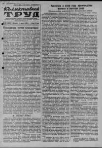 W '/ quc ct*cc^>' -< x r . Пролетарии гсехстран, соединяйтесь! IGKLueicnui&Hsai Орган Карасукского райкома Коммунистической партии Советского Союза и районного Совета депутатов трудящихся Новосибирской области ф 30 42C6DJ Пятница, 9марта 1956 г. |Цена 15коп. Поддержать почин венгеровцев! Животноводы КОЛХОЗОВ И СОВХОЗОВ района в трудных условиях текущей зимовки прилагает все усилия к тому, чтобы добиты-я лучших показа- ^ г ел ей в социалистическом соревновании за подъем продук- ' тивности молочного животноводства. За пять месяцев хозяйствен ного года надой молока на фуражную корову в среднем по району составляет 262 литра—на 47 литров больше в сравнении с тем же периодом прошлого года, а в феврале ^ а 30 литров больше. -W В соревновании колхозов первенство по надоям молока прочно удерживает колхоз пме ни Дзержинского. Здесь за пять месяцев получено от каж дой коровы по 394 литра, а в прошлом году за это же вре мя надой составлял только 239 литров. Хорошие показатели по производству молока имеют 4^акж е колхозы «Путь к ком* ^дунизму», «Маяк Ильича», имени Джамбула, а в колхозе имени Жданова нынче надои повысились почти в два раза. Успешно борется за получение ^ высоких надоев дойный гурт М. Долженко из совхоза «Октябрь». Воодушевленные историческими решениями XXсъезда КПСС, передовые животноводы района е большим подъемом борются за увеличение производства молочной продукции. К сожалению, в районе имеются и такие хозяйства, где слабо борются за повышение продуктивности молочного скота. Например, в колхозах имени Андреева и имени Тельмана нынче надои снизились по сравнению с прошлым годом. Низкие надои получают колхозы вмени Амангельды, имени М. Горького, имени Буденного. В колхозе им. Калинина на первый взгляд неплохие надо- молока. Но даже при неглубоком анализе можно убедиться, что здесь плохо борются за повышение продуктивности коров. В январе надой на фуражную корову составлял 57 литров, в феврале он возрос до 100 литров. В этих месяцах в колхозе шел активный растел коров, и поэтому такой рост надоя молока на фуражную корову не удивителен. Однако если посмотреть на продуктивность дойных коров, то выявляется совсем другая картина. На первой ферме в январе от каждой дойной коровы в среднем получили по 6—6,5 литра, в первой половине февраля надоиснизились в среднем до 5литров, к концу февраля они составили около 4-х литров, а 1,2,3 марта от каждой дойной коровы в среднем надаивали по3.7 литра. Где же борьба за повышение падоев? Этот колхоз значительно лучше многих других обеспечен грубыми кормами. Больше того,здесь вфеврале на 5 тысяч центнеров сена израсходовано больше, чем предусматривалось по рациону. Причина низких надоев—в неудовлетворитель ном уходе за скотом: ни одна ферма не механизирована, корма не приготовляются, на первой ферме уже скормили весь силос. Сегодня в нашей газете публикуются обязательства жи вотноводов Венгеровского района, выступивших инициаторами соревнования за крутой подъем продуктивности дойного скота, увеличение производства молока, снижение трудовых затрат на производство единицы продукции, успешное завершение зимовки скота и досрочное выполнение планов заготовок молока. Этот патриотический при зыв должен быть широко поддержан животноводами колхо зов и совхозов нашего района Товарищи колхозники, ра ботинки МТС и совхозов зоонетспец