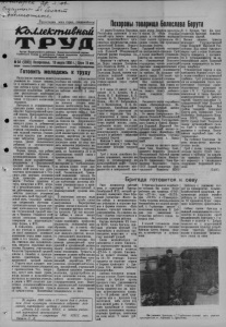 2. КОЛЛЕКТИВНЫЙ ТРУД 18 марта 1956 года, № &Г4 ПАРТИЙНАЯ жизнь Механизаторы изучают материалы XX съезда НПСС Слушатели кружка по изучению текущей политики при парторганизации Октябрьской МТС начали собираться в кабинет секретаря партбюро МТС задолго до занятий. Чувствовалось, что они идут сюда не для того, чтобы зарегистрировать свое присутствие, а из желания более глубоко и правильно разобраться в тех событиях, которые происходят в стране и в международной жизни. Когда подошло время, пропагандист А. Полуэктов начал занятие. Сегодня у слушателей повышенный интерес к теме. Еще бы: с этого занятия они начинают изучать материалы XX съезда КПСС. Пропагандист сначала рассказал слушателям об историческом значении XX съезда, затем перешел к изложению первой темы—отчетного доклада ЦК КПСС XX съезду партии, сделанного Н. С. Хрущевым. Коммунисты внимательно следили за работой съезда,—слушали радио, читали газеты. Но это обстоятельство не ослабляет внимания. Они знают, чтобы успешно выполнять решения съезда, надо прежде их глубоко изучить. Тов. Полуэктов излагает материал просто, доходчиво, приводит убедительные цифры и факты. Рассказ ведется не отвлеченно, а в увязке с местной жизнью. Он сообщает о том, что механизаторы Октябрьской МТС, участвуя в соревновании в честь XX съезда КПСС, с честью справились со своими обязательствами—закончили ремонт тракторного парка и сейчас успешно готовят другую технику. Пропагандист говорит о тех задачах, которые предстоит решить механизаторам по завершению комплексной подготовки к севу и благополучному окончанию зимовки скота. В конце занятия т. Полуэктов ответил на ряд вопросов слушателей. Занятие окончено, но задушевная беседа еще долго продолжалась. Каждому хочется поделиться мыслями о новых решениях партии и правительства, принятых в соответствии с указаниями XX съезда КПСС, в которых проявляется великая забота о советских людях, рассказать о трудностях и неполадках в работе, мешающих успешному выполнению планов шестой пятилетки. Коммунисты и механизаторы Октябрьской МТС, готовясь к весне, глубоко изучают материалы XX съезда КПСС. П. Тур, инструктор РК КПСС. Сибирь в годы шестой пятилетки На собрании актива партийной организации Новосибирска и Новосибирской области с докладом об итогах XX съезда КПСС и задачах областной партийной организации выступил пер вый секретарь обкома партии тов. Дерюгин. XX съезд КПСС поставил задачу превратить Сибирь в крупнейшую базу по добыче угля, производству электроэнергии. В шестой пятилетке промышленность Новосибирска сделает новый большой шаг вперед. Увеличится выпуск станков различных типов, в том числе тяжелых и уникальных, крупных прессов, мощных турбогенераторов, гидрогенераторов для крупнейших энергетических строек на сибирских реках, сельскохозяйственных, строительных и других машин. В городах области Берд- ске, Куйбышеве, Искитиме и других будут построены металлообрабатывающие заводы, мебельные фабрики, трикотажный комбинат, заводы масла и сухого молока, скотобойни с механизированными холодильниками. Огромный размах приобретает строительство в Новосибирске и сельской местности. Трудящиеся областного центра должны получить в шестой пятилетке 1600 тысяч квадратных метров жилья, большое число культурно-бытовых объектов. Для повышения темпов сель