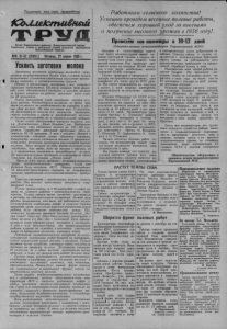 т 1 С« Пролетарии всех стран, соединяйтесь! iCbUueJcmu&M£iM Орган Карасукского райкома Коммунистической партии Советского Союза и районного Совета депутатов трудящихся Новосибирской области №№ 51-52 (2083) | Пятница, 27 апреля 1956 г. Усилить заготовки молока Заготовки молочной продукции являются важнейшим государственным делом. Они служат целям дальнейшего улучшения снабжения населения продуктами питания, а промышленности сырьем. Однако в организации заготовок у нас имеются серьезные недостатки. Об этом говорит тот факт, что план обязательных поставок и закупок молока за первый квартал по району выполнен всего лишь на 58 процентов.. Плохо выполняют план заготовок молока кол хозы района. Руководители колхозов не прочь при этом сослаться на необеспеченность кормами и низкие удои молока. Но это не совсем так. Те колхозы, где председатели поняли всю важность заготовок, строго подходят к учету и расходованию молока, не только выполняют, но и перевыполняют задания. Такие плохо обеспеченные кормами колхозы, как им. Дзержинского, „Маяк Ильича", им. Куйбышева выполнили план заготовок молока на 140—160 процентов. Товарность молочной продукции здесь составила 52—61 процент. А вот в колхозе «Вперед к коммунизму», который лучше обеспечен кормами, товарность молока составила только 11 процентов, остальная молочная продукция расходуется внутри колхоза. Здесь только на одну треть выполнен план заготовок, как видно, дело не только в кормах, но и в правильном, экономном расходовании мс.лока. Не выполнили планы заготовок сельхозартели имени Сталина, им. Калинина, „Новая семья". Прошло уже много времени с момента^ реорганизации заготовительного аппарата, когда эти функции были переданы МТС. Однако руководители машинно-тракторных станций не занимаются серьезно заготовками сельскохозяйственных продуктов. Серьезно отстают с заготовками молока совхозы района. Они только наполовину выполнили квартальный план. Плохо организована, а в большинстве случаев пущена на самотек работа с индивидуальными сдатчиками. Только пятая часть хозяйств приступила к расчету по обязательным поставкам. Между тем факты показывают, что там, где работники молочно-консервного комбината, райфо и сельские Советы проводят среди населения широкую разъяснительную работу, дело обстоит значительно лучше. Так, почти все хозяйства третьей бригады колхоза „Новая семья" (поселок Ново-Николаевна) участвуют в сдаче молока и в два—два с половиной раза перевыполнили план обязательных поставок и госзакупа. А вот в селе Шилово-Курье, где организационная работа пущена на самотек, в заготовке участвует менее 10 процентов хозяйств, имеющих коров. Работники заготовительного аппарата молочноконсервного комбината редко бывают на периферии, плохо организуют прием молока в госзакуп. Только десятая часть хозяйств, имеющих коров, заключила договоры на продажу молока. Договорами охвачены 16 колхозов, но к сдаче молока приступили шесть артелей, а план по срокам выполняют только три. Больше того, руководители молочно-консервного комбината в ожидании „сезона большого молока" в некоторых населенных пунктах, как, например, Красносельском, Новом Буге, первой ферме совхоза им. Дзержинского и некоторых других совсем не организовали приемку молока. Такое крайне неудовлетворительное положение дел с заготов