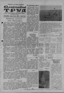 2- КОЛЛЕКТИВНЫЙ ТРУД 23 мая 1956 года, № 62 * Партийная жизнь «■ '• -------------- “ Г Г - * - - - ч Тракторная бригада Мажита Алтыбаева заняла первенство в соревновании на весеннем севе среди бригад Октябрьской МТС. Этому во многом способствовала хорошо поставленная массово-политическая работа. В бригаде регулярно “"выпускались стенная га зета, «боевые листки», молнии, в которых рассказывалось об опыте передовиков, критиковались недостатки. Тракторный вагончик оформлен лозунгами, плакатами, призывающими увеличить производство зерна, добиться резкого подъема сельскохозяйственного производства. я**9** ‘г ’: щ В бригаде регулярно проводятся читки газет и'беседы. Это'поручено учетчику агитатору Александру Бендеру. На снинВе: агитатор Александр Бендер проводит читку газет. Фото А. Черкасского. ---------------------------------------------- ® • —------------------------- ------------------- Социалистическому соревнованию— повседневное партийное руководство Наш колхоз к весенним полевым работам приступил при наличии больших трудностей: тракторы из Студеновской МТС в колхоз пришли с большим опозданием, серьезные трудности возникли при комплектовании бригад в связи с недостатком рабочей силы. Большие усилия пришлось приложить правлению колхоза и партийной организации, чтобы сев провести в лучшие а г ротехнические сроки. Во многом помогло нам успешно справиться с работами на весеннем севе широко развернувшееся социалистическое соревнование. Оно содействовало развитию инициативы, творческой сознательности колхозников и механизаторов. О силе соревнования гово- £ ит, например, такой факт, фи выполнении весенних предпосевных работ первенство завоевала бригада т. Белкина. Ей было вручено переходящее красное знамя колхоза. Тов. Белкин, выражая мнение членов бригады, заявил, что бригада не уступит первенства. И действительно, каждый трудился с еще большим напряжением, -стремясь закрепить достигнутый успех. Но не сидели сложа руки и колхозники соревнующейся с ней бригады т. Бехтольда. Равняясь на передовиков, они горячо взялись за дело и уже в следующей пятидневке вышли победителями. 14 мая они закончили сев пшеницы, а 16 мая сев всех зерновых. 100 ге к таров кукурузы посеяно квадратно - гнездовым способом. После этого они помогли второй бригаде завершить сев. Мы твердо уяснили, что работа партийной организации по развертыванию и повседневному руководству социалистическим соревнованием только тогда дает результаты, когда к ней подходишь как к работе с живыми людьми. За подписанием обязательств и проверкой их выполнения мы не забываем главное—человека, людей, которые претворяют эти обязательства в жизнь. Поэтому работу по руководству социалистическим соревнованием мы сочетаем с активной агитационно-массовой работой среди колхозников и механизаторов. Наша агитация носит конкретный характер. Агитаторы призывают выполнить взятые колхозниками обязательства— добиться урожая 12 центнеров с гектара на круг, настричь по три килограмма шерсти в среднем от каждой овцы, надоить по 19 центнеров молока от каждой фуражной коровы, получить по 90 яиц от каждой несушки. При подведении итогов социалистического соревнования мы всякий раз отмечаем передовиков, а правление колхоза лучших из них награждает ценными подарками или денежными премиями. Итоги соревнования широко освещаем в стенной и с