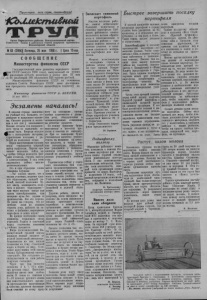 Пролетарии всех стран, соединяйтесь! 1CbUj£Jcm4t£mm Орган Карасуксного райкома Коммунистической партии Советского Союза и районного Совета депутатов трудящихся Новосибирской области №63 (2094)] Пятница, 25 мая 1956 г. | Цена 15 коп, С О О Б Щ Е Н И Е Министерства финансов СССР Государственный заем развития народного хозяйства СССР (выпуск 1956 года), выпущенный на сумму 92 миллиарда рублей, размещен к концу дня 21 мая на 34 миллиарда 305 миллионов 323 тысячи рублей. Министерством финансов СССР на основании указания Совета Министров СССР дано распоряжение прекратить повсеместно дальнейшую подписку на заем. М и н и ст р финансов СССР А . З ВЕ Р ЕВ . 22 мая 1956 г. Экзамены начались! В школах страны закончился учебный год. Начались переводные и выпускные экзамены. Сколько радости и волнения в эти дни у школьников! Позади остался год напряженного труда по овладению основ ам и наук. Впереди веселое ^ э т о с пионерскими лагерями, туристскими походами, с работой на колхозных полях. Перед выпускниками средних школ открывается широкий выбор профессии. Партия призывает молодежь пойти на чч £тройки Сибири возводить фабрики и заводы, строить шахты и электростанции. И над этим задумались сейчас многие десятиклассники. Это к ним обращены слова товарища Хрущева: — Вы хорошо знаете, что в наших условиях, получив среднее образование, каждый рабочий, каждый колхозник будет иметь возможность получить и высшее образование— или через высшую школу или путем самообразования, или вечерние вузы без отрыва от производства. Все это хорошо. Но разве мы говорим, что советские люди не должны строить дома, работать на заводах и фабриках, выращивать картофель и доить коров? Но прежде необходимо сдать экзамены, порадовать своих учителей, Родину и советский народ отличными знаниями ^учебных предметов. Вчера десятиклассники Ка- расартовской средней школы держали первый экзамен по родной (казахской)литературе, большинство из них писали сочинения на тему «Советский народ в борьбе за мир». Сочинение выпускника этой школы Фаима Кабдрахманова оценено «пятеркой». Все остальные десятиклассники за свои работы получили «четверки». Через три дня начнутся экзамены в 4, 7, 10-х классах русских школ. Нынешние экзамены имеют своп особенности. В связи со снятием в 8— 10 классах русского языка как самостоятельного предмета преподавания выпускникам в^ аттестат, зрелости выставляются отметки по этому предмету на основании оценки уровня грамотности и развития речи, обнаруженных в экзаменационных сочинениях на аттестат зрелости. По новому принципу будет выводиться в аттестат зрелости и отметка по литературе. При ее выведении будет учитываться качество устного ответа на экзамене на аттестат зрелости, а также знания литературы, обнаруженные учащимися в экзаменационном сочинении, с учетом знаний по литературе, проявленных учащимися в учебном году. Горячая пора сейчас у советских школьников. Они готовятся продемонстрировать перед своими учителями всю ту сумму знаний, которых получены в течение учебного года. Учительские коллективы школ обеспокоены тем, чтобы все учащиеся сдавали экзамены в спокойной и деловой обстановке. Дорогие ребята, юноши и девушки, наша школьная молодежь! За ходом экзаменов в школах пристально следят партийные и комсомольские организации, ваши родители, учителя и работники ор