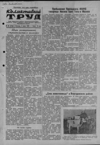 ' J T ' Пролетарии всех стран, соединяйтесь) fC o U U £ Jc rn U # H 6 lU Пребывание Президента ФНРЮ товарища Иосипа Броз Тито в Москве Орган Карасукского райкома Коммунистической партии Советского Союза и районного Совета депутатов трудящихся Новосибирской области № 69 (2100) | Пятница, 8 июня Ш 6 г. | Цена 15 коп. Шире развертывать строительство в колхозах Наступила горячая пора строительства. Прошла первая неделя месячника по строительству в колхозах района. За это время в колхозах многое сделано по сооружению хозяйственных построек. Особенностью нынешнего строительного сезона является то, что повсеместно многие строения сооружаются по типовым проектам, 'значительно повысилась культура строительства. Большое строительство развернулось в колхозе «Маяк Ильича». Здесь сооружается два типовых двухрядных саманных коровника, свинарник, колхозный клуб на 250 мест. В третьей бригаде этой же артели приступили к строительству школы, красного уголка и конторы. Председатель сельхозартели т. Горелов уделяет большое внимание организации строительных работ. В колхозе создано несколько бригад но строительству. Здесь широко используется местный строительный материал. Бригада из 10 человек изготовляет саман. Елена Шевченко, Анна Ена, Александр Чекушкин ежедневно перевыполняют нормы на поделке самана. Хорошие показатели в работе у строителей четвертой комплексной бригады этого колхоза, которой руководит бригадир А. Бацлер. На строительстве коровника с вальковымп стенами из мятой глины с соломой особенно выделяются своим самоотверженным трудом Александра Юнг и Екатерина Должикова. Много строительных объектов предстоит соорудить колхозам имени Андреева, им. Сталина, «Путь Ленина» и многим другим. Однако не везде конкретно руководят строительством хозяйственных объектов. Большой объем строительных работ предстоит выполнить в этом году колхозам района. Можно прямо сказать, что в этот строительный сезон сооружается столько объектов, сколько их не сооружалось в течение нескольких последних лет. Основным местным строительным материалом в наших условиях является кирпич. Только из него можно строить объекты прочно и надолго. Однако производство кирпича в колхозах до сих пор по-настоящему не налажено. Б колхозе им. Андреева только недавно восстановлена печь для обжига сырца. А ведь здесь можно было уже получить первую партию строительного кирпича. Бездействуют по сути дела кирпичные заводы в колхозах «Вперед к коммунизму» и им. Тельмана. Здесь все еще ведут подготовительные работы и упускают лучшее время для производства этого ценного строительного материала. Однако нельзя пренебрегать и более простым и следовательно более дешевым местным стройматериалом. Необходимо широко использовать в строительстве колхозных объектов, как это делают в колхозе «Маяк Ильича», саман, камыш и лозу. В колхозе им. Сталина запроектировано строительство пти.чика из камышитовых фашин. Но производство их в артели не налажено до сих пор. Срывается план строительных работ не только в колхозе им. Сталина. Медлят с развертыванием фронта строительства также и в артелях «Путь к коммунизму», «Красный пути- ловец» и им. Джамбула. Работники отдела сельского и колхозного строительства райисполкома плохо организуют строительные работы в районе и в лучшем случае считают своим 